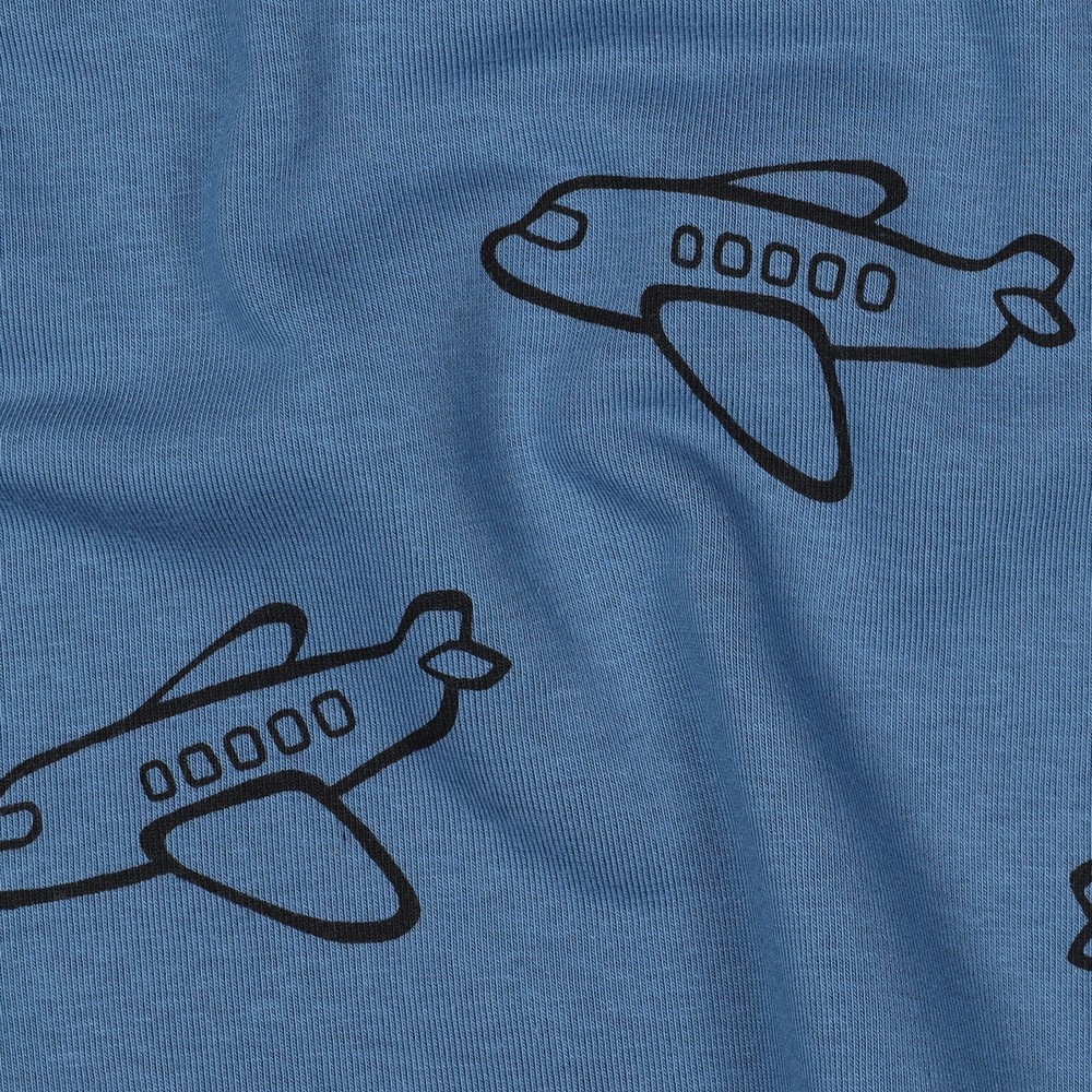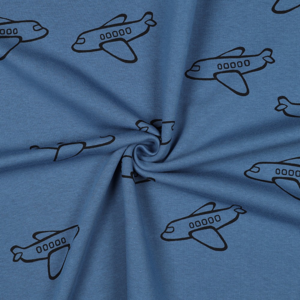 Un tissu comme un petit ciel d'aventure : sur le bleu riche, de joyeux avions volent au-dessus de tendres nuages et de petites étoiles - prêts pour le prochain voyage imaginaire. L'intérieur gratté rend le tissu merveilleusement doux et moelleux, parfait pour tous les vêtements préférés qui doivent être confortables et cool à la fois.