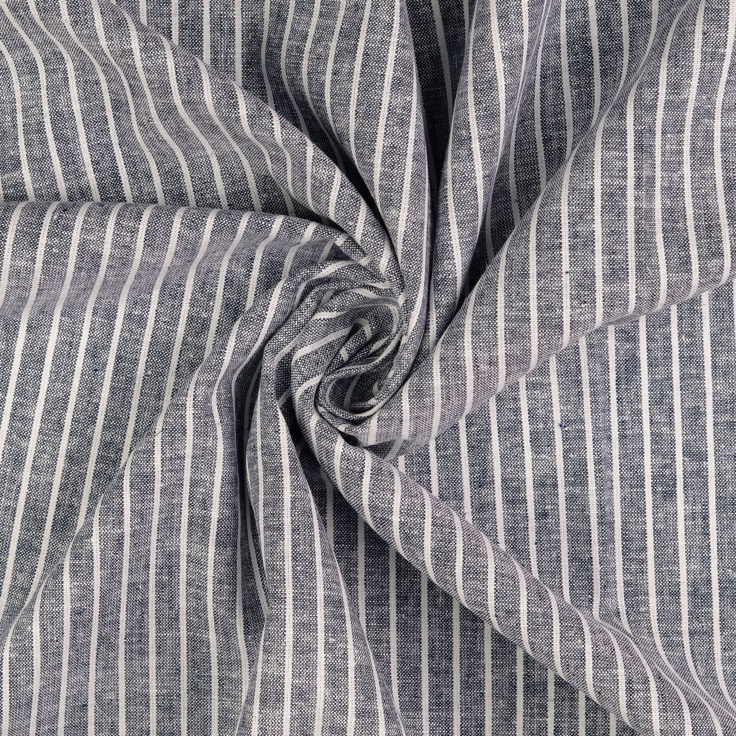 Lin - Coton rayures bleu marine