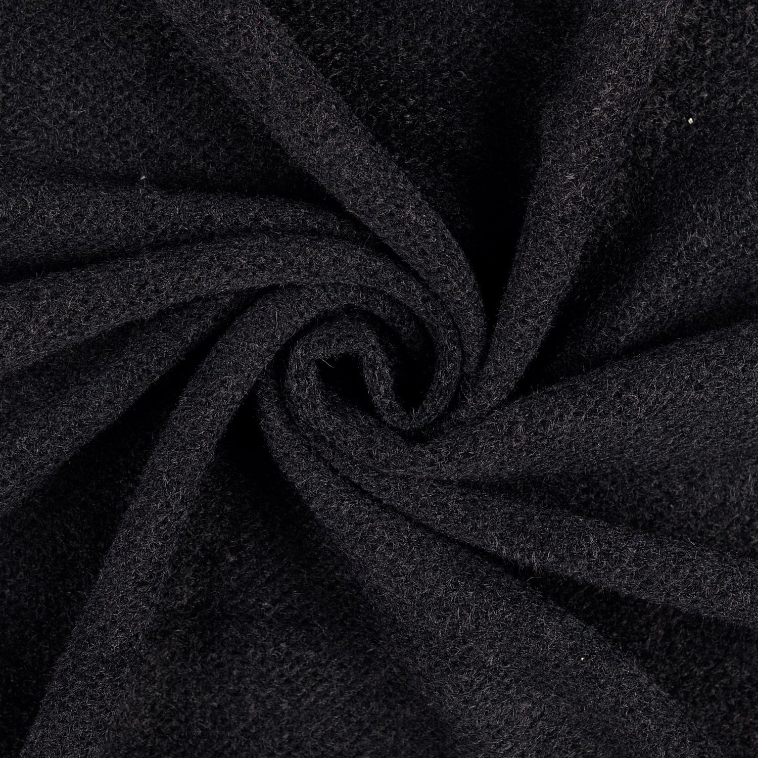 Le tissu est plus lourd et tricoté de manière dense, ce qui le rend agréablement chaud et stable en forme. En même temps, son élasticité modérée garantit que vestes, manteaux, cardigans ou pulls douillets se portent confortablement et offrent une bonne liberté de mouvement sans se déformer. L’envers présente un maillage lisse et fin, qui se prête également à merveille à des vêtements d’intérieur chics ou des pièces de lounge élégantes.