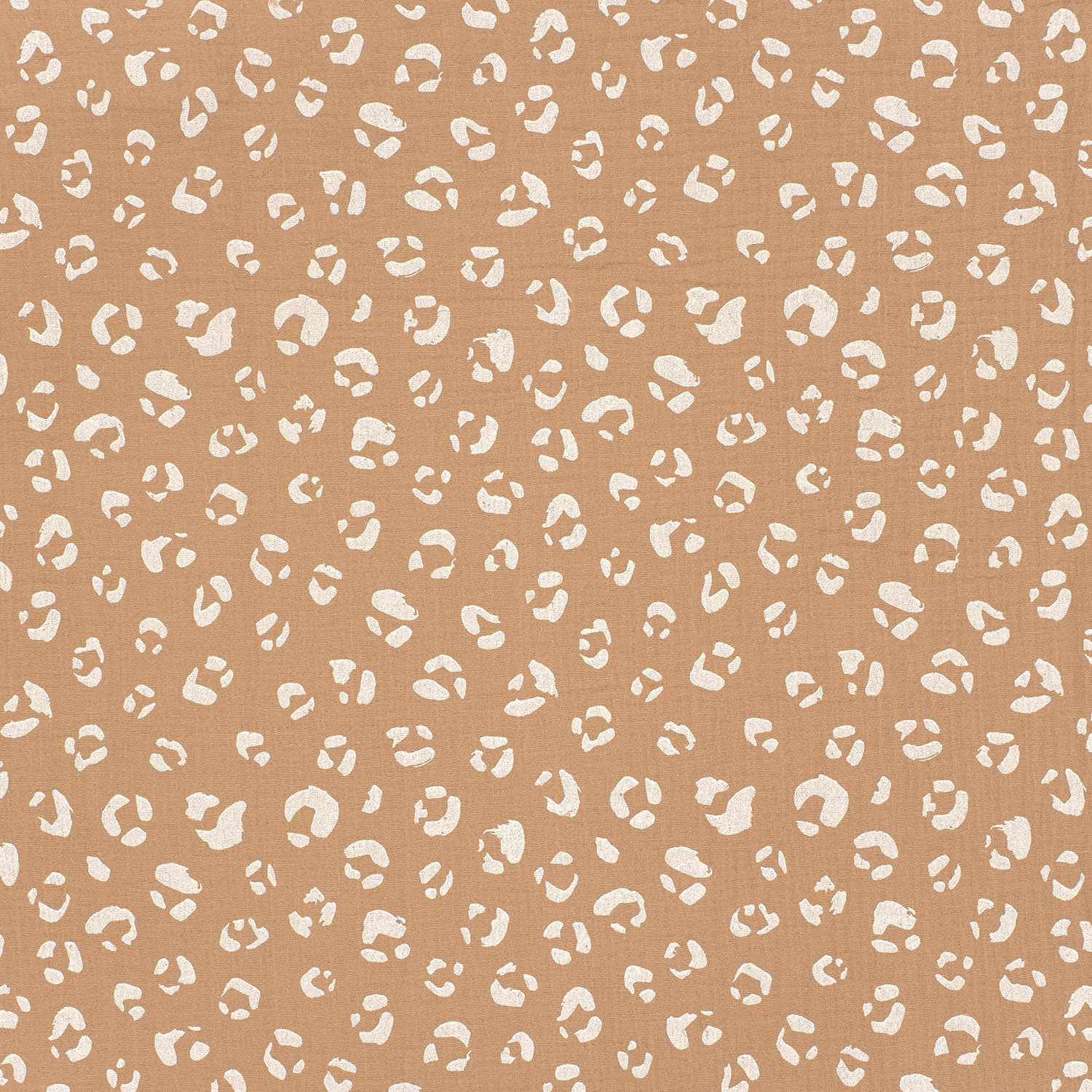Une touche de sauvagerie, élégamment emballée : cette mousseline à motif léopard sur un ton muscade chaud allie un design animal tendance à une élégance naturelle et terreuse. Les taches de léopard finement dessinées dans des nuances de brun foncé et de noir se détachent magnifiquement sur le fond caramel chaud, conférant au tissu une allure moderne tout en restant intemporellement apaisante.