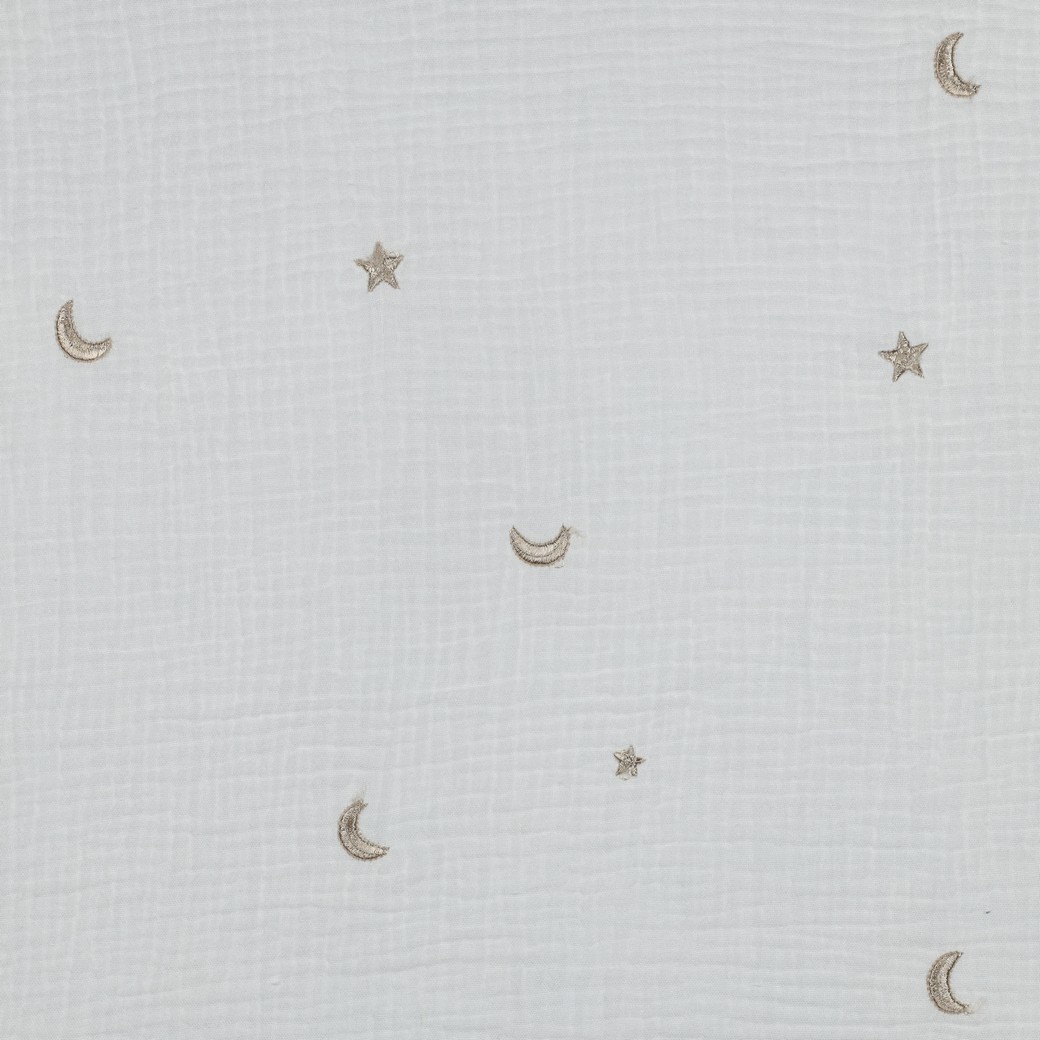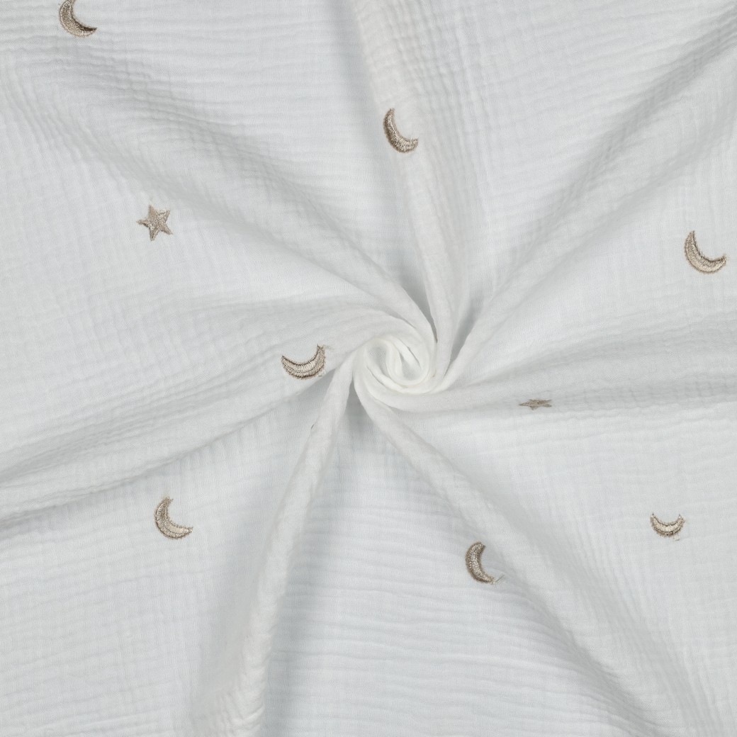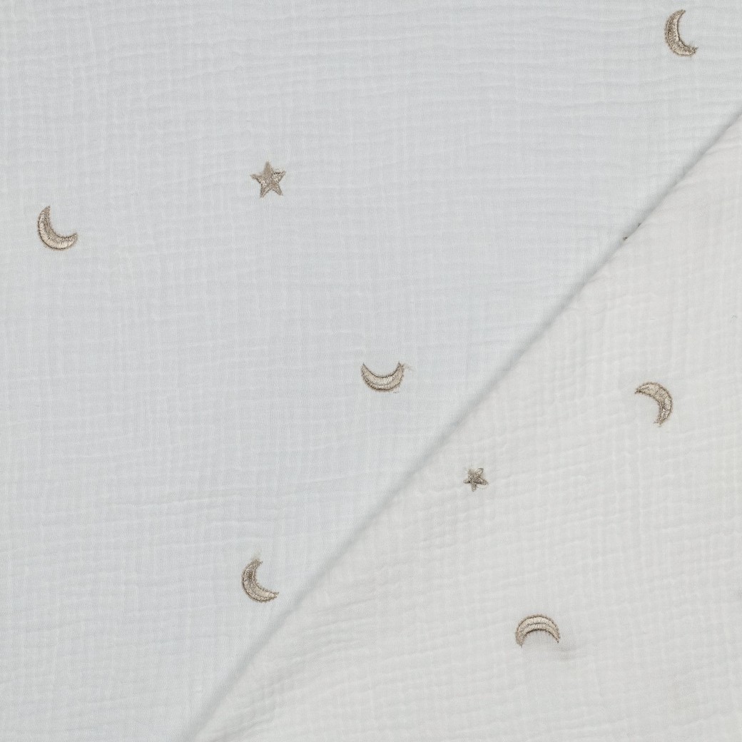 Mousseline de coton - Étoiles et lunes brodées écru