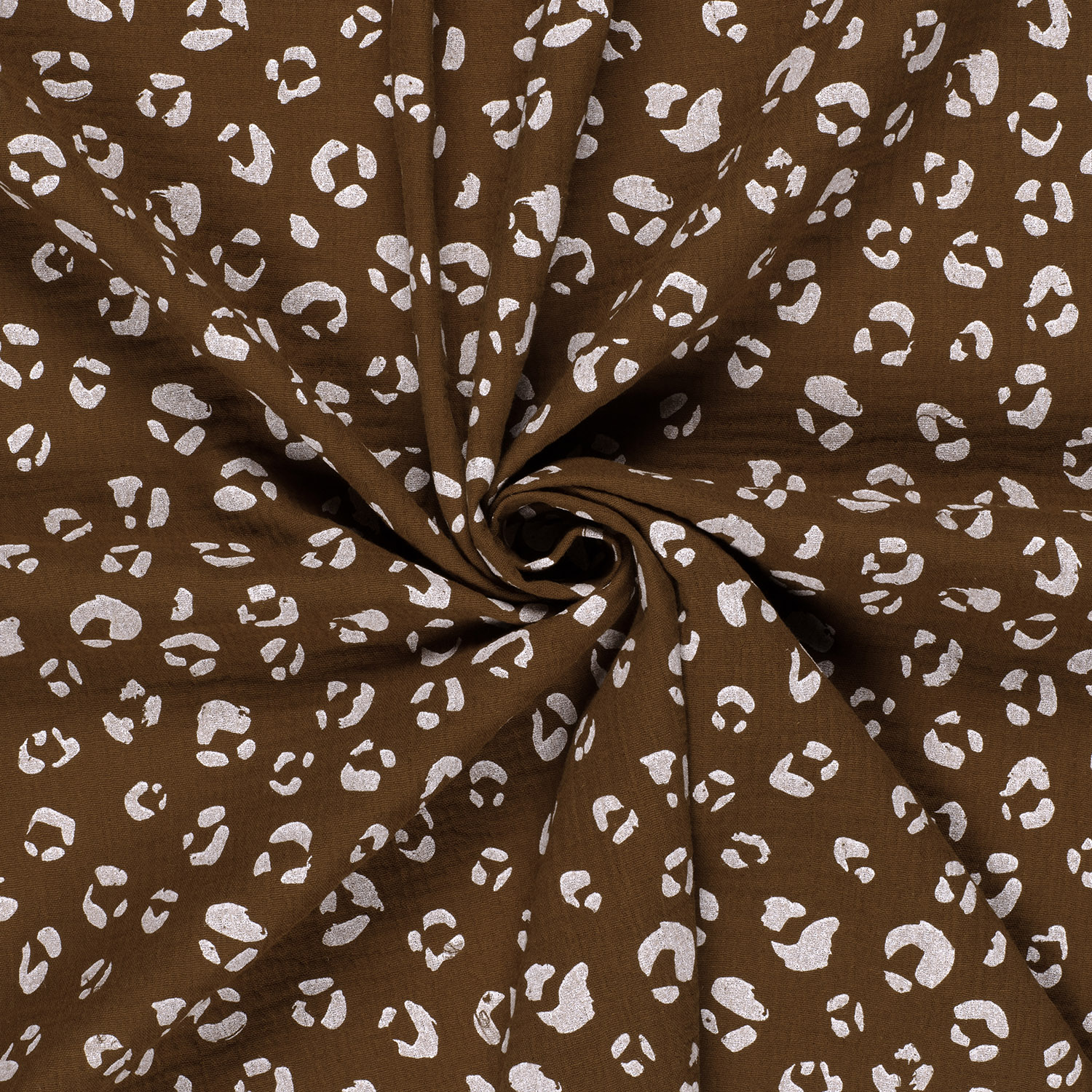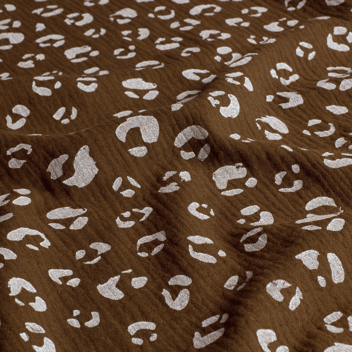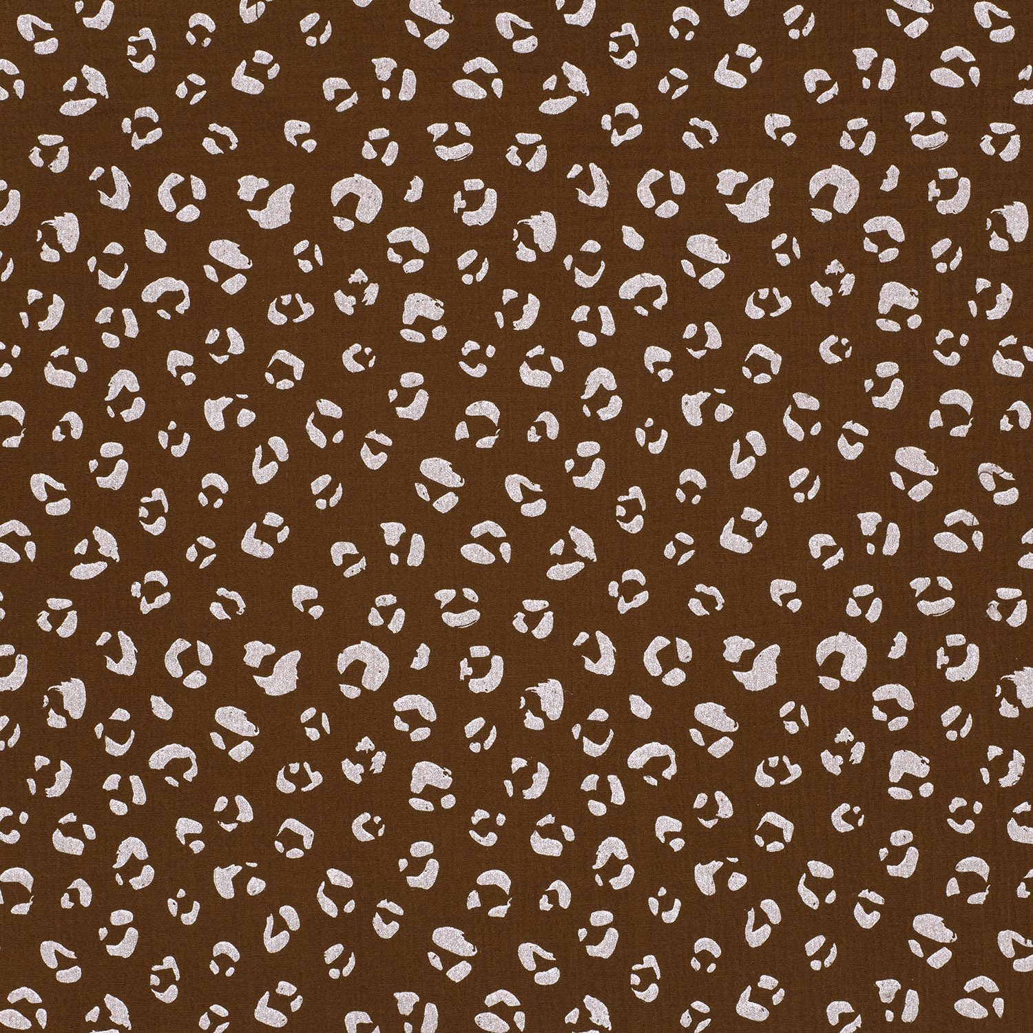 Cette mousseline apporte un charme sauvage à vos projets de couture : Sur un fond brun moyen chaud se déploie un motif léopard élégant composé de taches foncées, presque noires – moderne mais intemporel. La surface douce et légèrement texturée de la mousseline souligne le look décontracté et confère une note merveilleusement naturelle au design.