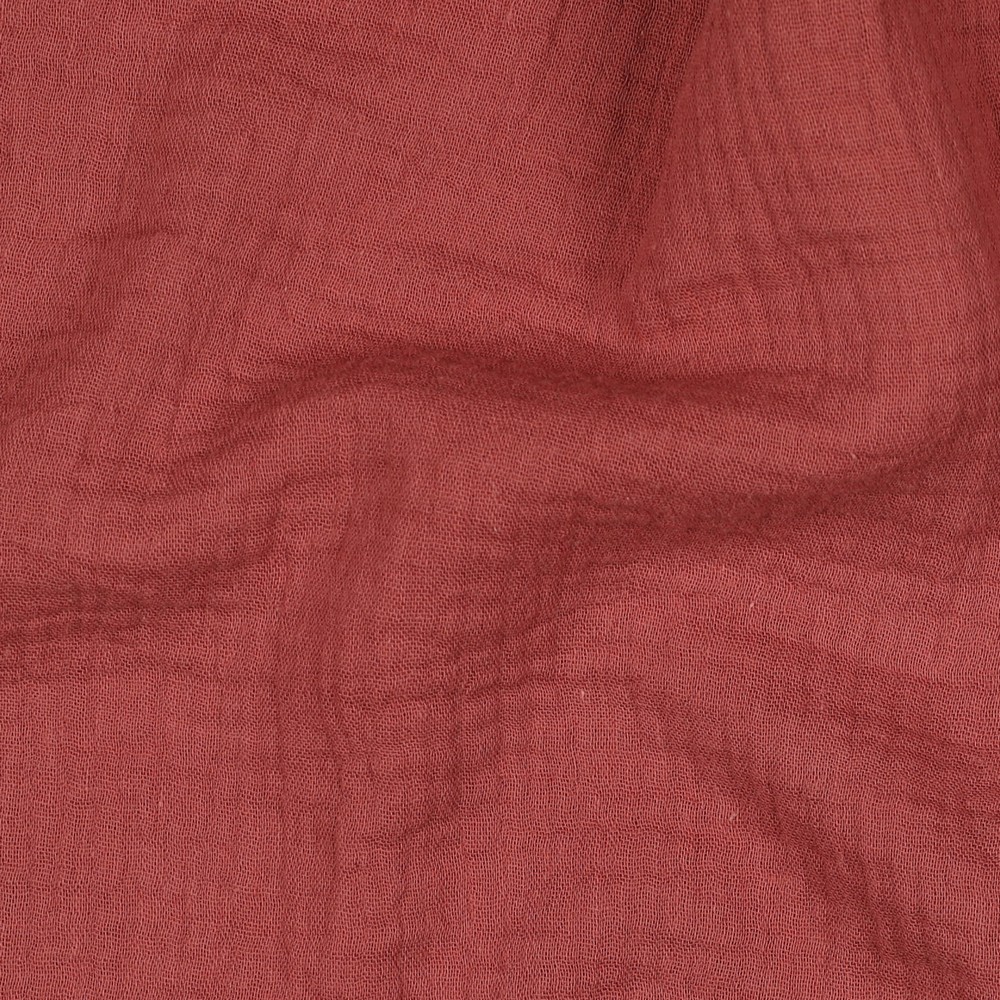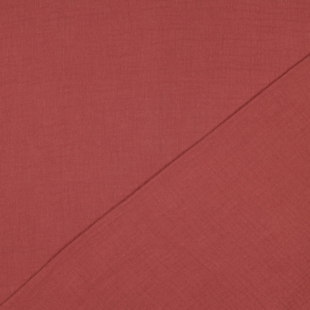 Une teinte chaude et terreuse de henné rencontre la texture décontractée de la mousseline : ce tissu uni séduit par son aspect naturel légèrement froissé et sa finition mate et douce. Le brun rouille profond avec une touche de terre cuite apparaît à la fois moderne et intemporel – parfait pour ceux qui aiment les couleurs sobres mais expressives.