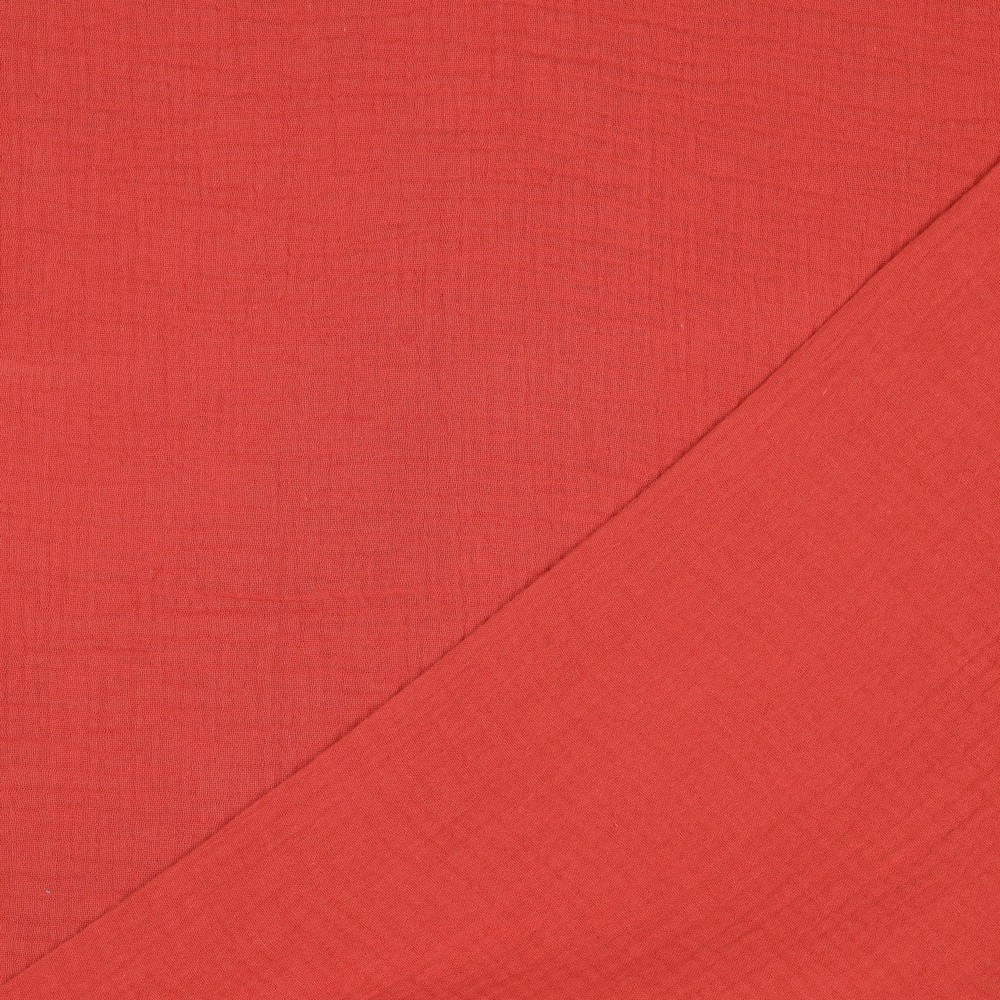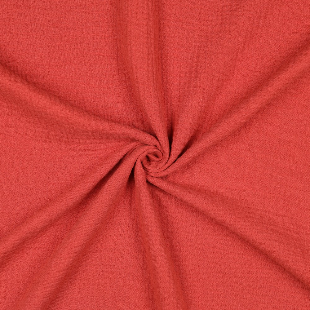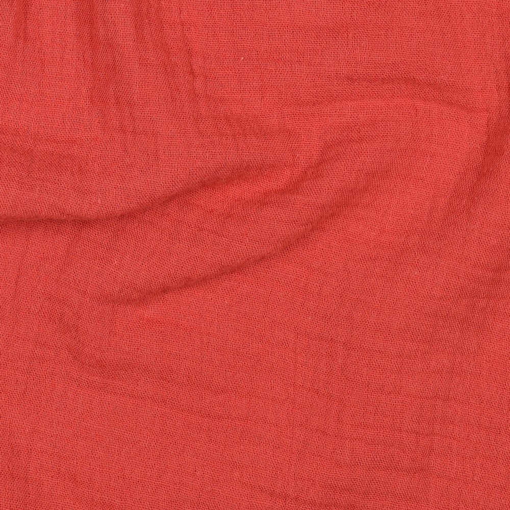 La nuance rouge-orangée intense rappelle les couchers de soleil et les soirées d'été – parfaite pour des pièces remarquables ou des accents délicats. Que ce soit des blouses aériennes, des pantalons amples, des foulards, des châles, des couvertures pour bébé ou des accessoires douillets : cette mousseline unie se combine facilement et s’accorde aussi bien avec des tons terre naturels qu’avec des couleurs contrastées vives.