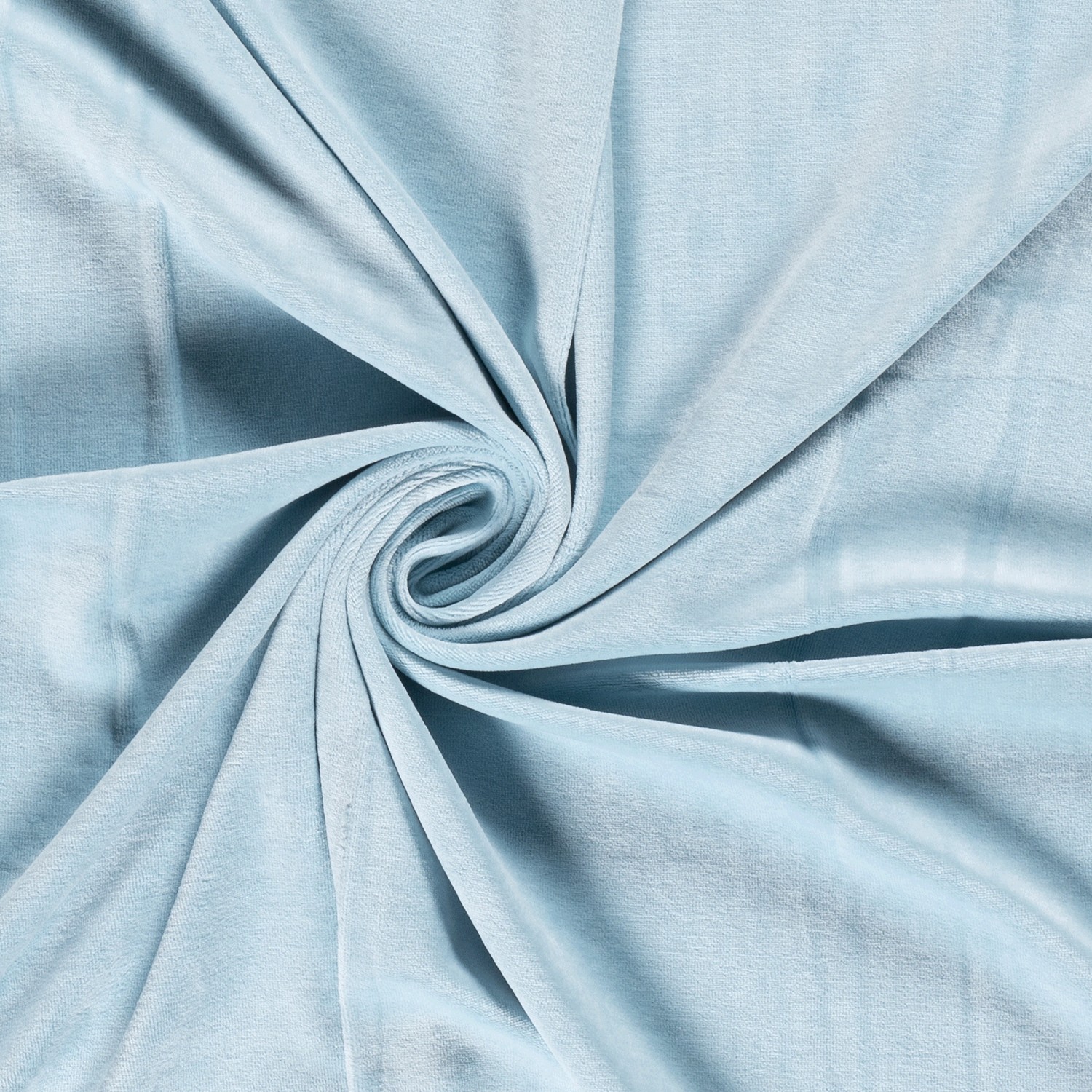 Ce nicky divinement doux dans un bleu glacé délicat invite immédiatement à se blottir. La surface élégamment brillante et la nuance pastel douce donnent à vos projets de couture une allure particulièrement cosy et à la fois moderne.