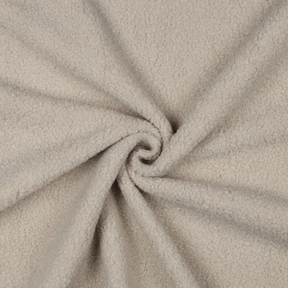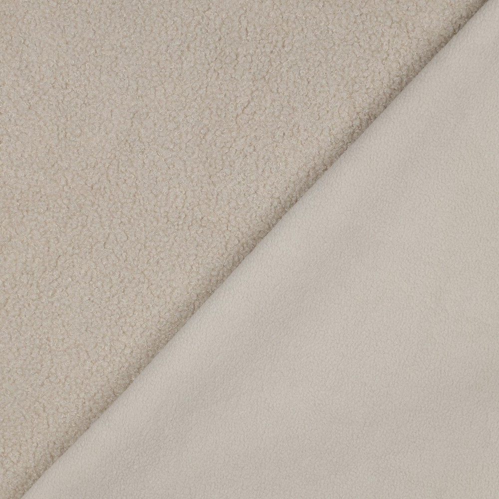 Doux, moelleux et élégant – ce teddyfleece dans un beige raffiné invite à la détente immédiate. Un côté présente un aspect boucle moderne avec une fine structure de boucles irrégulières rappelant les tissus de créateurs haut de gamme. L'autre côté est agréablement duveteux comme une fourrure d'ours en peluche et procure chaleur et confort supplémentaires.