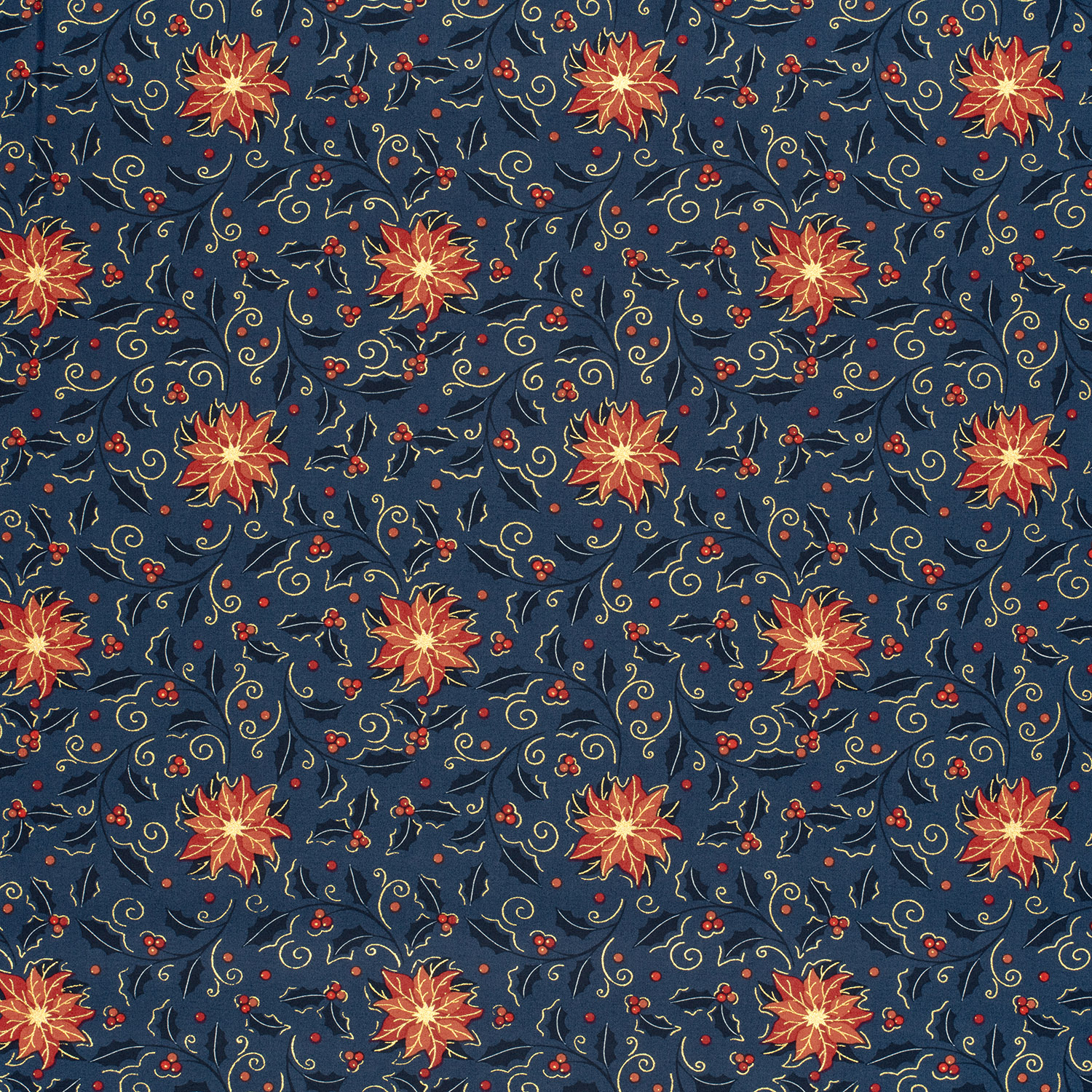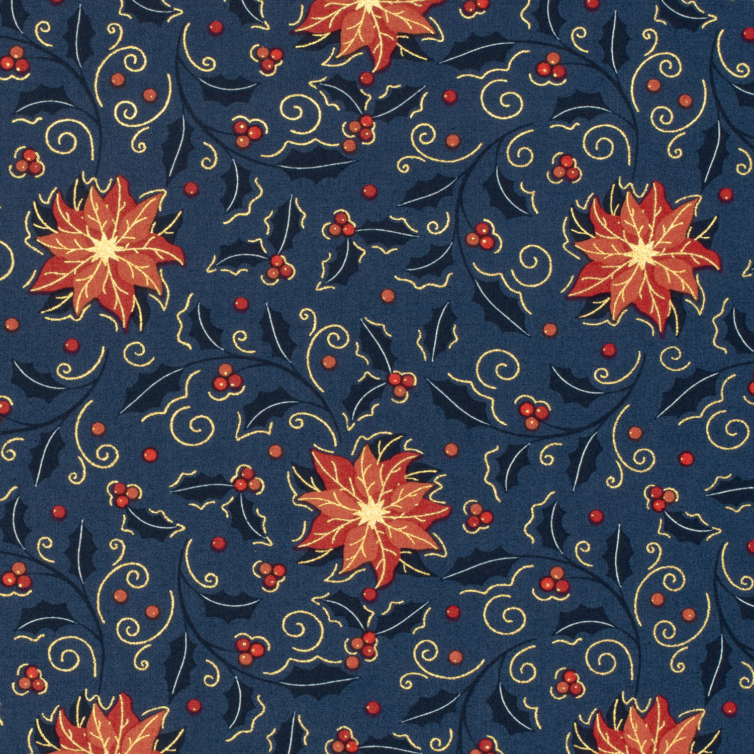 Avec son jeu de couleurs élégant mêlant bleu foncé, or, vert et rouge, ce tissu apporte rapidement une ambiance chaleureuse de Noël à votre intérieur et transforme chaque projet de couture en un véritable point d’attraction.