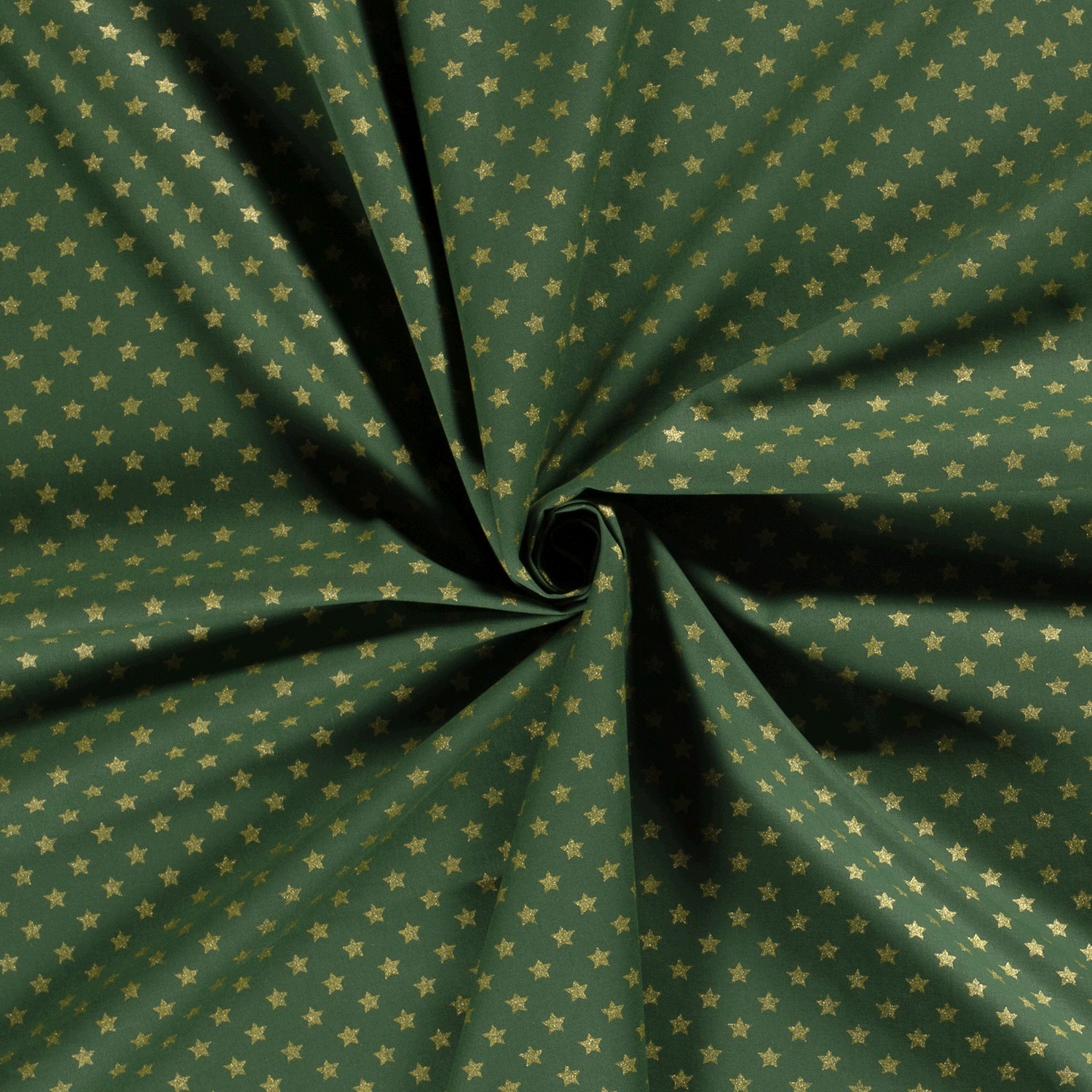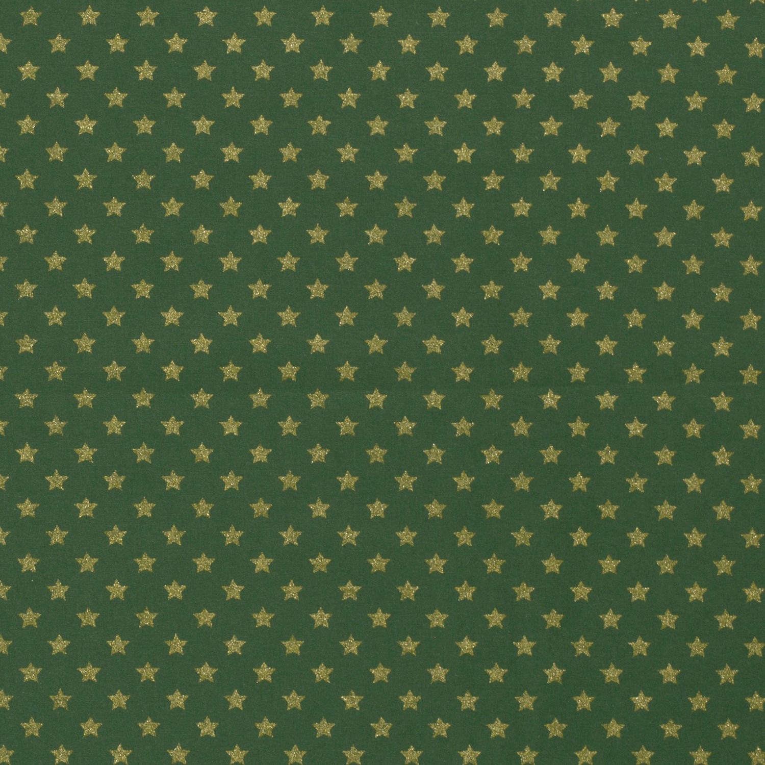 Un tissu comme une nuit d'hiver silencieuse en forêt : sur un vert sapin profond scintillent d'innombrables petites étoiles en élégant doré. Le motif fin et régulier d'étoiles est festif sans être envahissant – parfait pour ceux qui souhaitent décorer ou coudre Noël avec style et modernité.