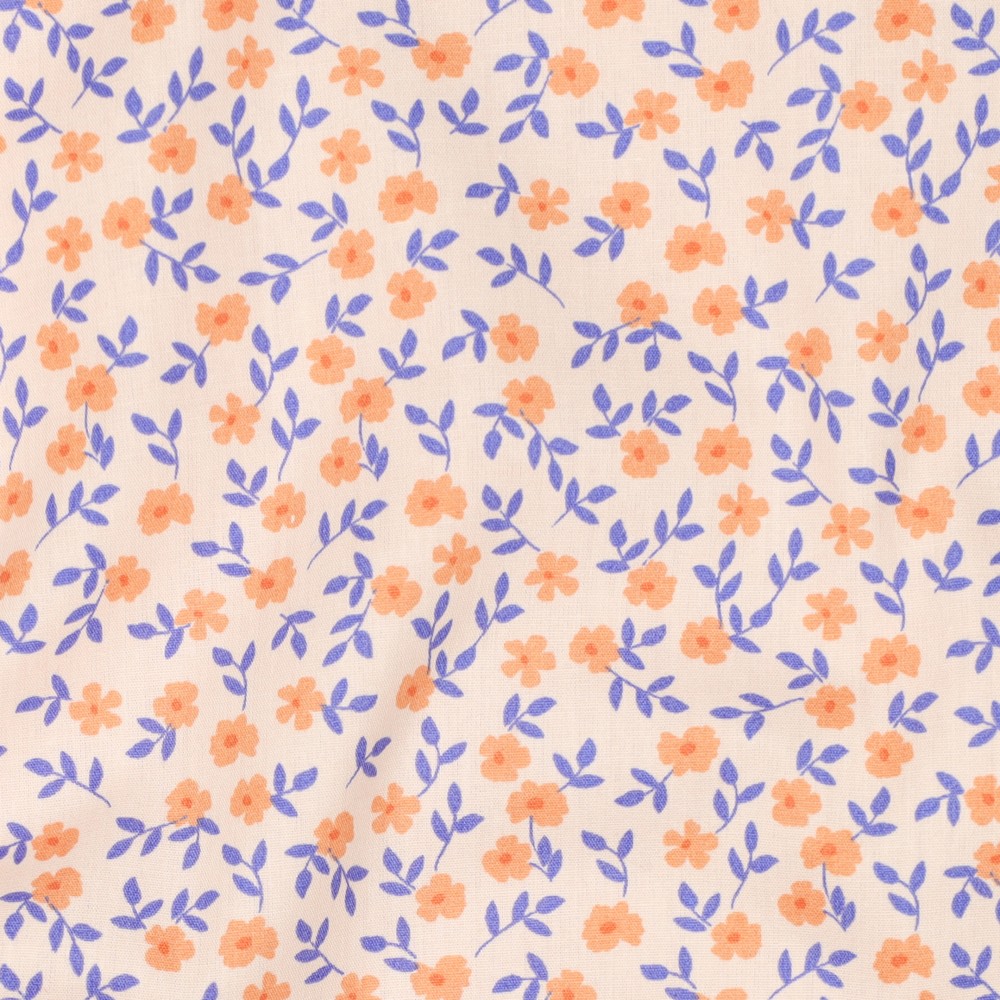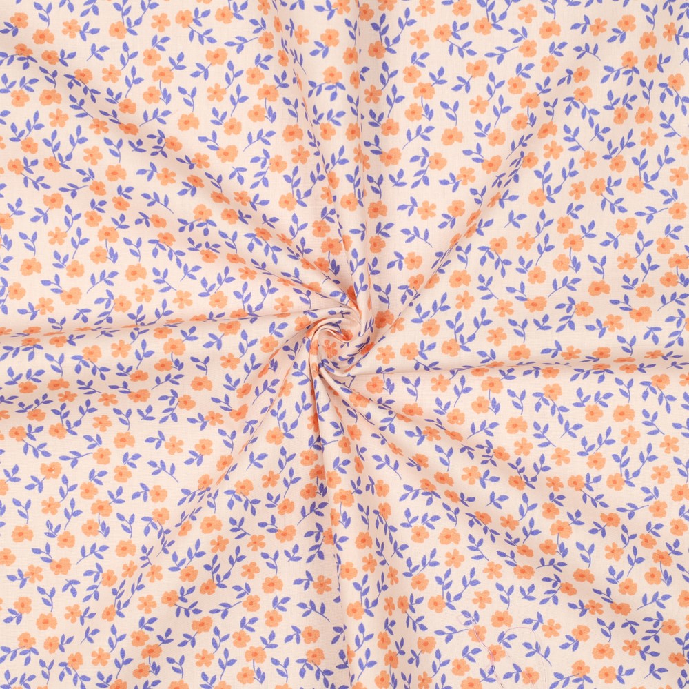 Popeline de coton bio - Petites fleurs rose pâle