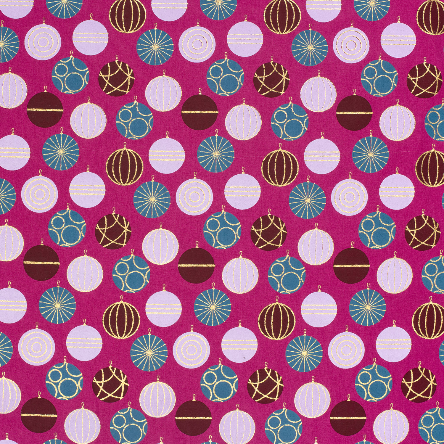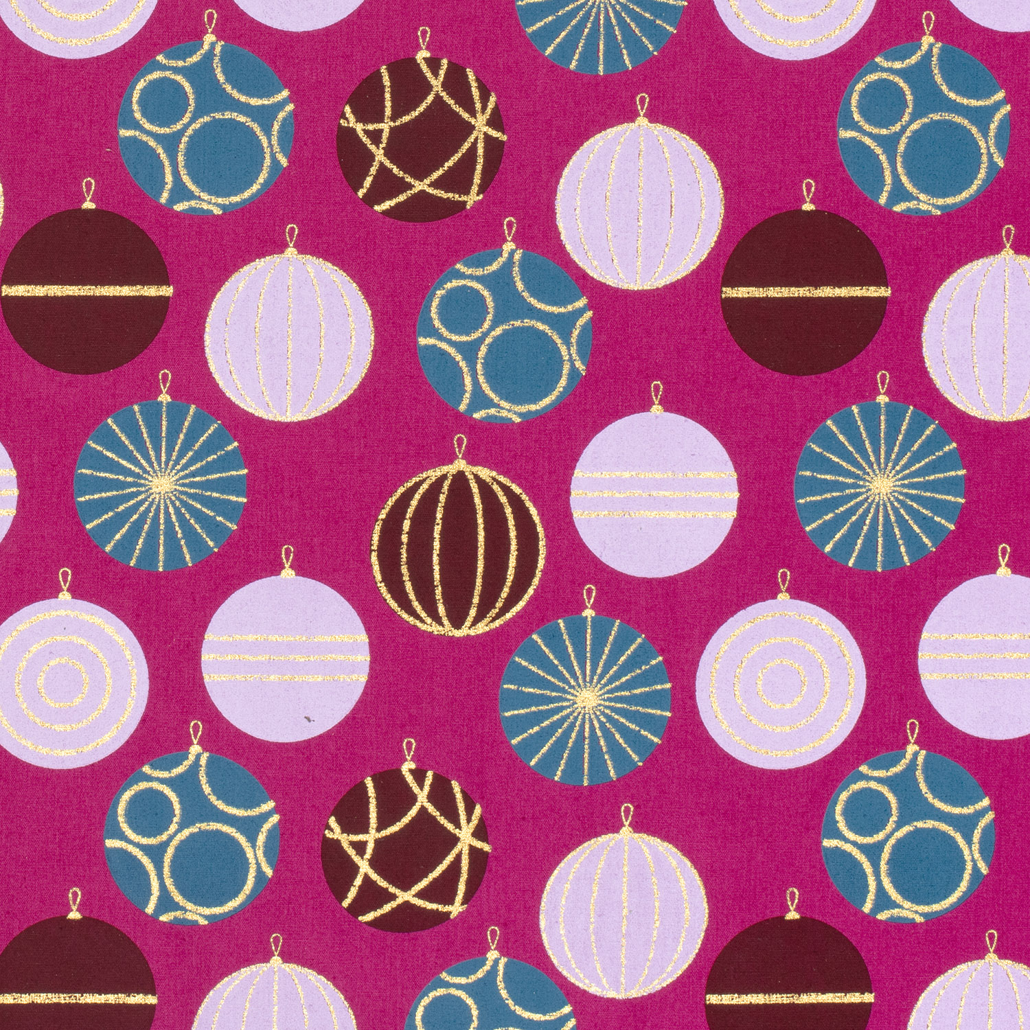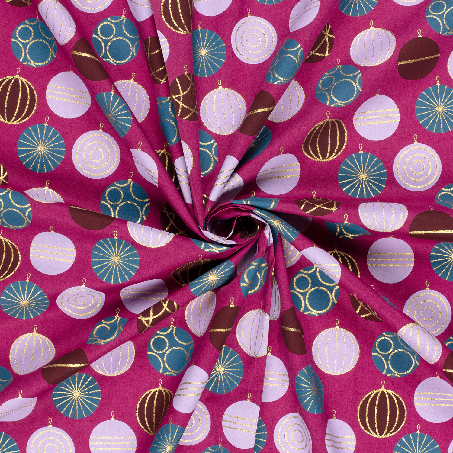 Ce tissu festif apporte la magie de Noël directement à votre table de couture. Sur un fond élégant aux tons baies, s'alignent de délicates boules de Noël, soigneusement décorées de détails dorés fins. Le scintillement discret des accents dorés confère au design une note élégante, presque féerique – parfait pour ceux qui aiment Noël sans kitsch.