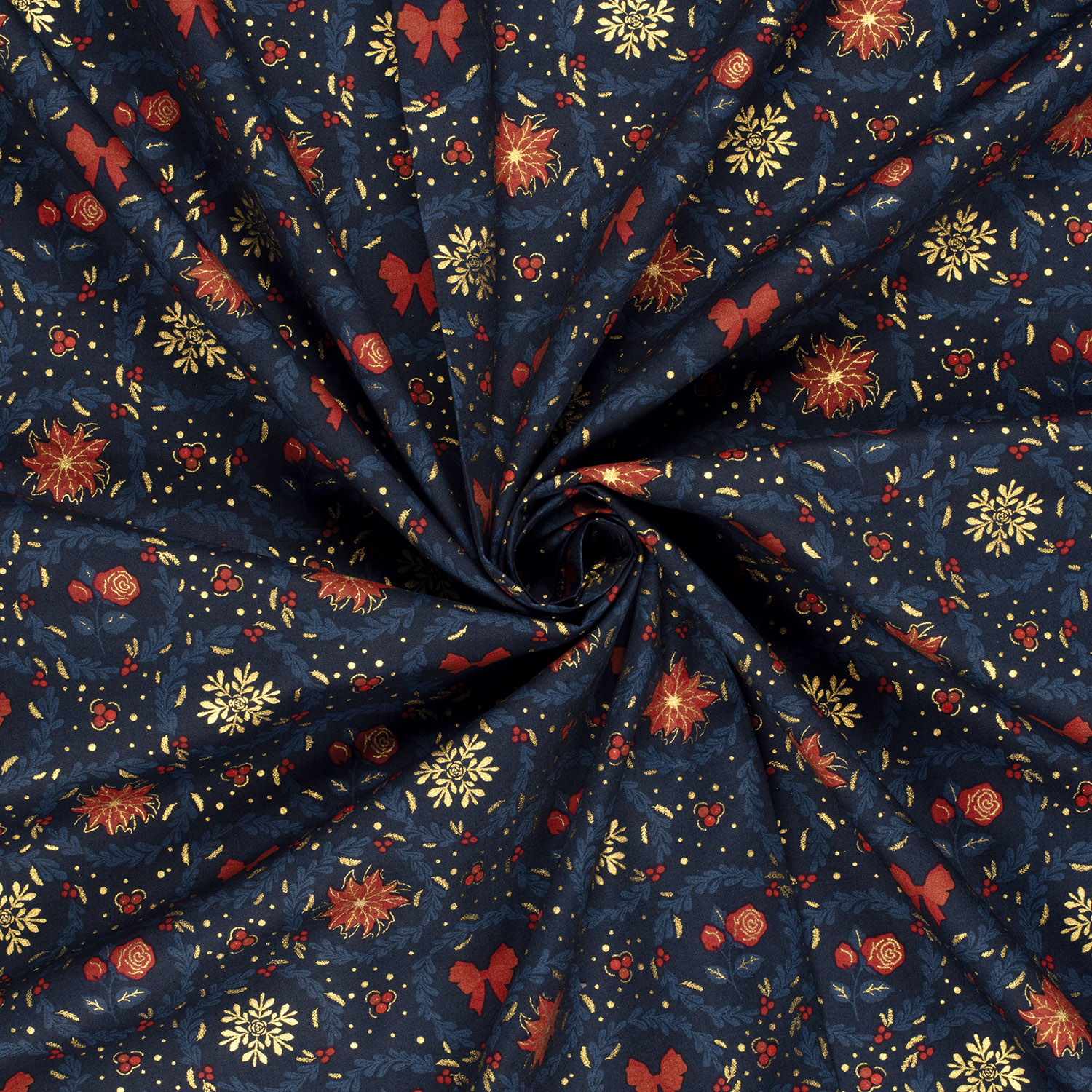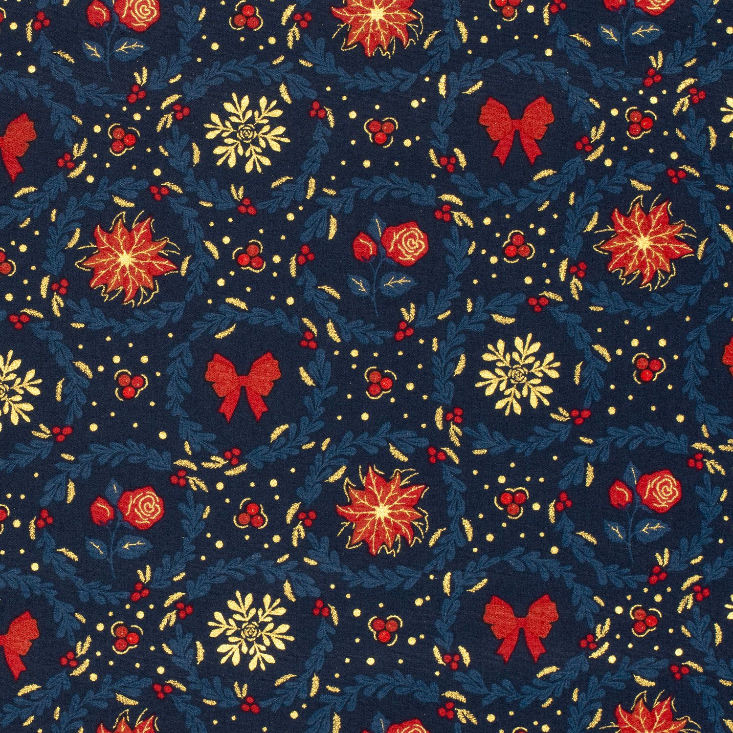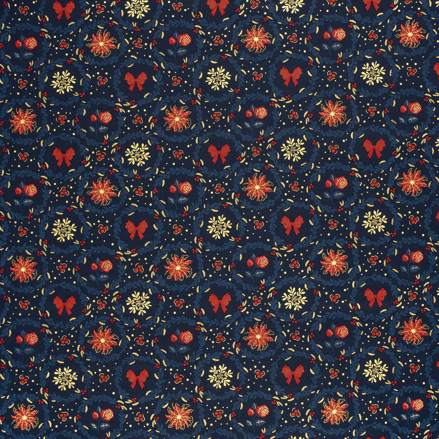 Popeline de coton - Couronne de fleurs Bleu Or