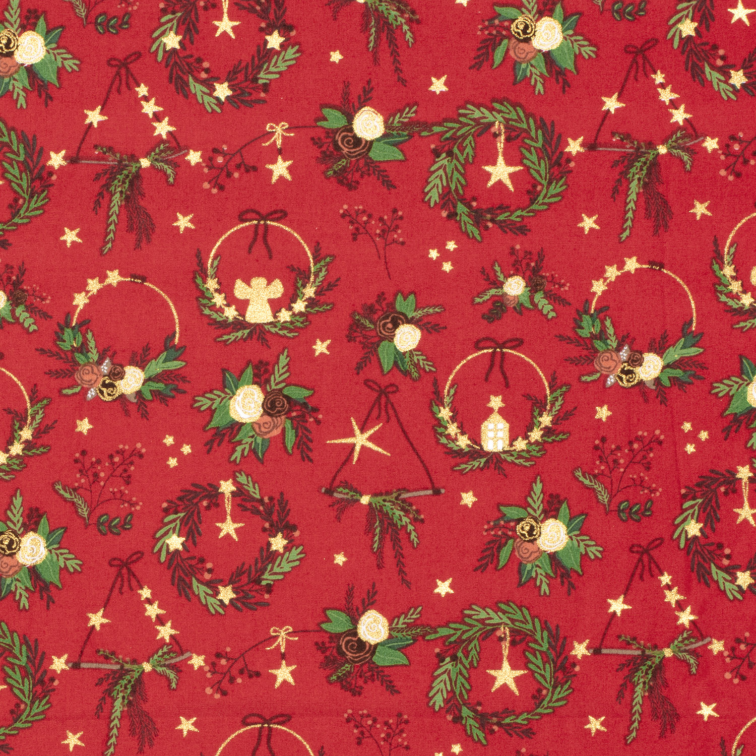 Popeline de coton - Couronnes de Noël Rouge et Or