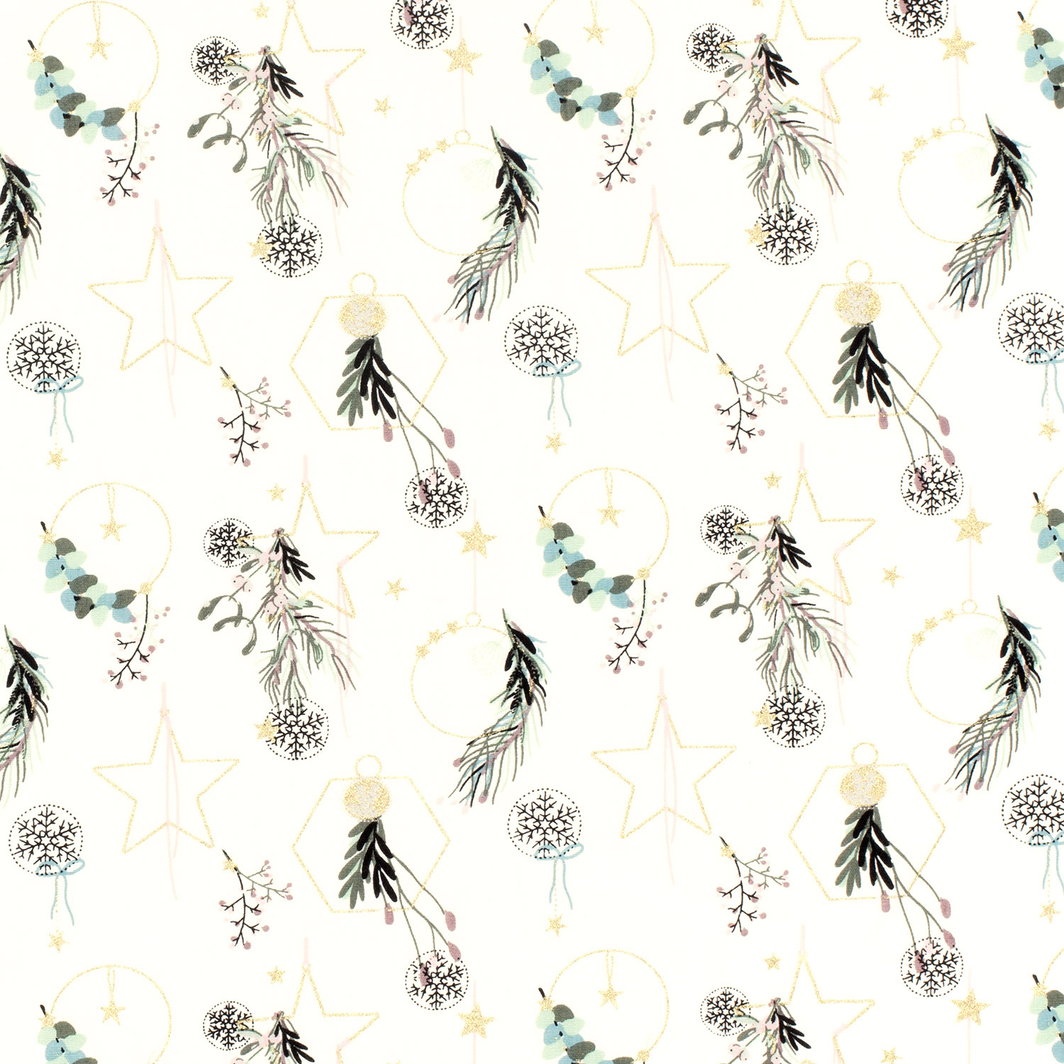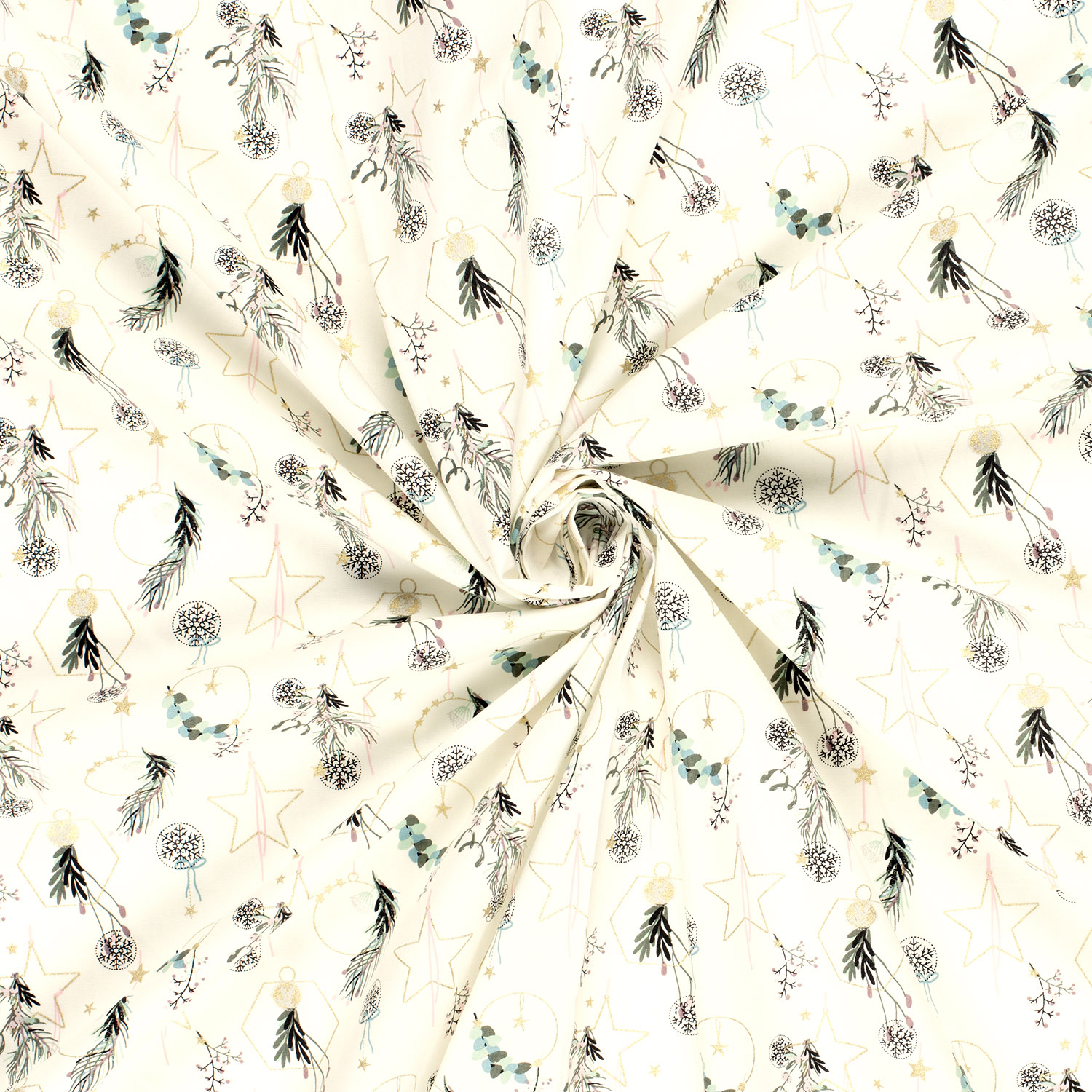 Popeline de coton - Décoration de Noël Écru Or