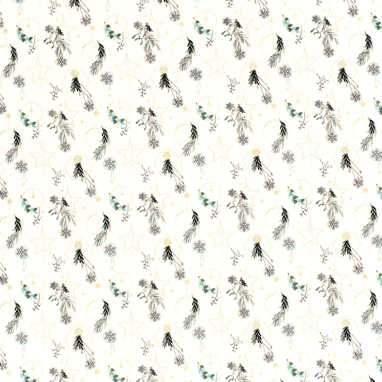 Ce tissu festif enchante avec son élégant motif de Noël dans un écru chaud et un or noble. De délicats motifs dorés – des ornements stylisés aux fines étoiles en passant par des éléments décoratifs ludiques – se répartissent harmonieusement sur le fond clair, créant un aspect particulièrement chaleureux.