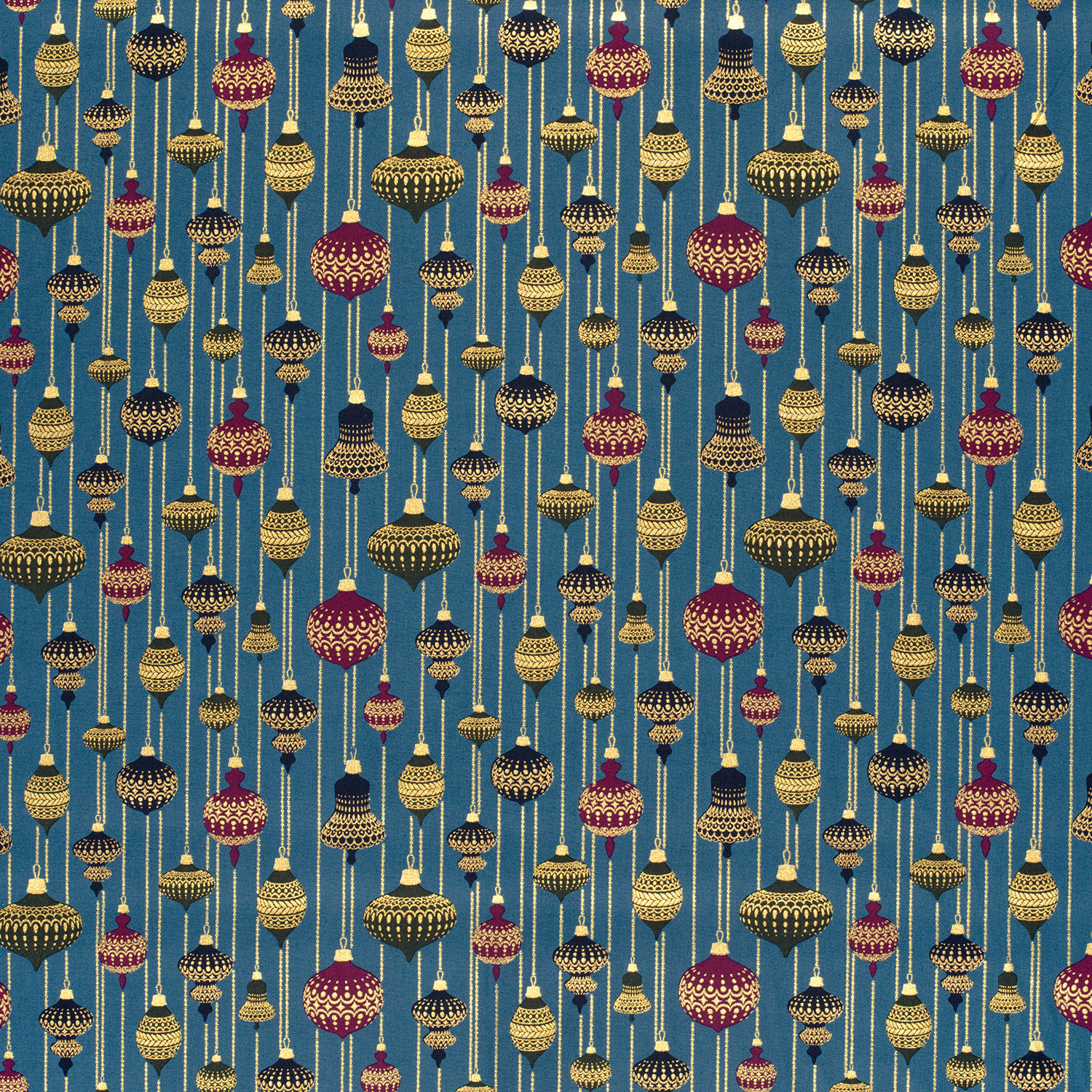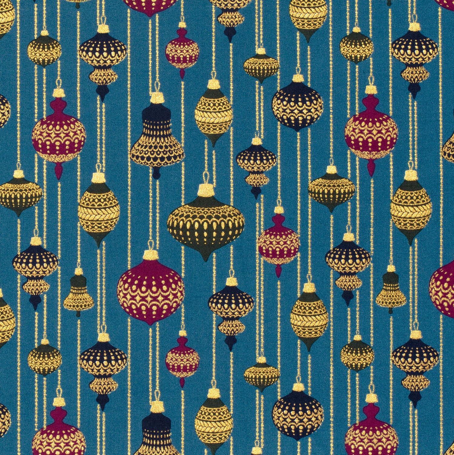 Popeline de coton - Décorations de Noël bleu pétrole et or