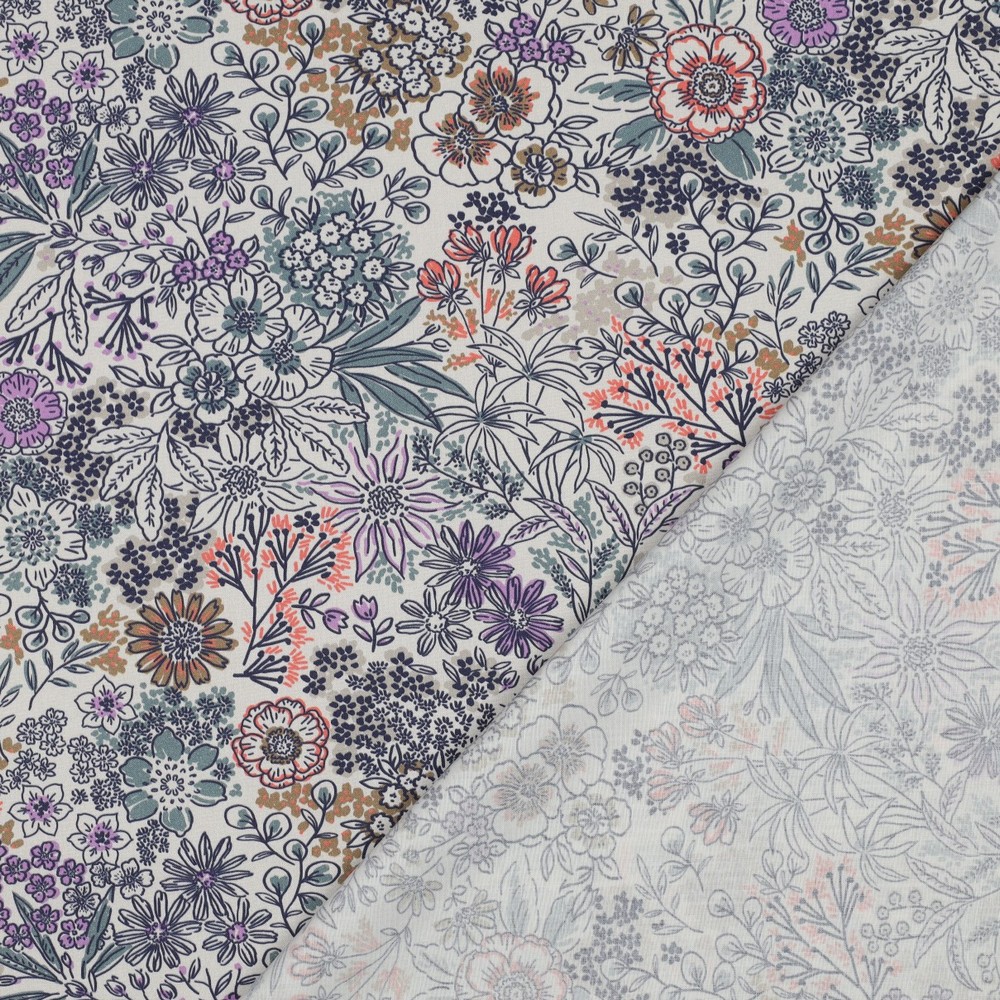 Une promenade dans une prairie d'été en fleurs - c'est exactement ce sentiment que ce tissu enchanteur capture. Sur un doux ton écru, d'innombrables petites fleurs des champs s'épanouissent dans des couleurs joyeuses : du rose tendre, du jaune vif, du vert frais, des tons bleus délicats et des nuances chaudes d'orange se répartissent comme un tapis de fleurs multicolores sur toute la surface.