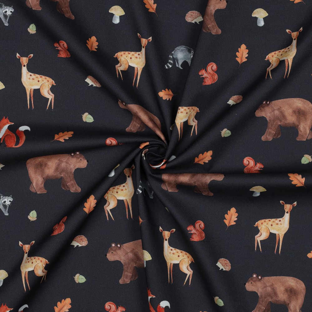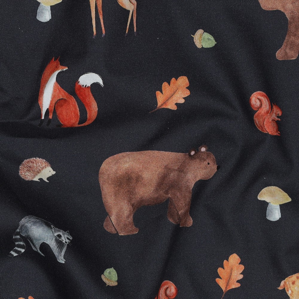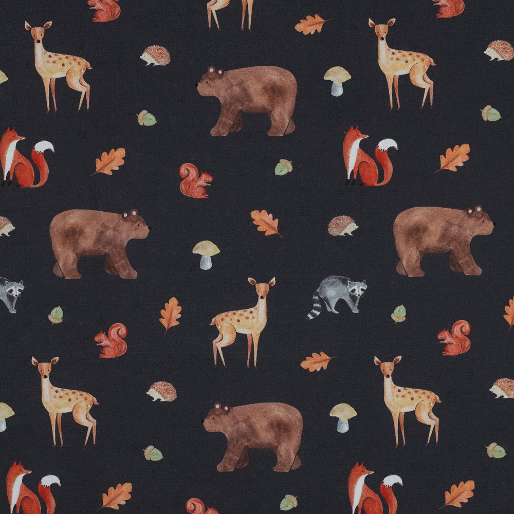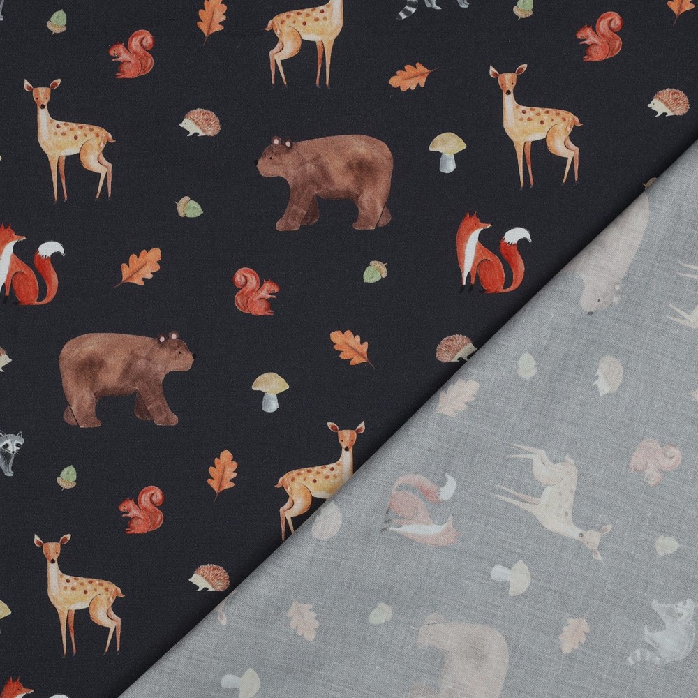 Popeline de Coton - Impression Numérique Animaux de la Forêt Automne Gris
