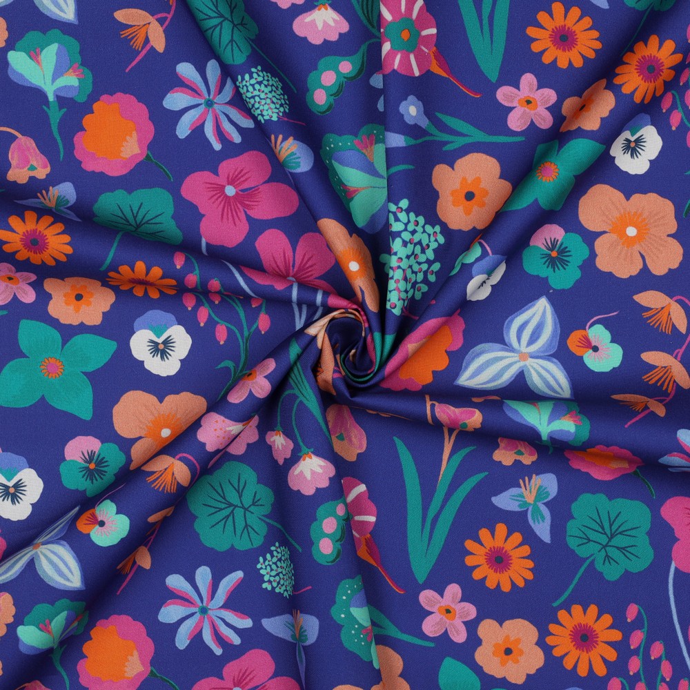 Popeline de coton - Nerida Hansen impression numérique Meadow Flower bleu lilas