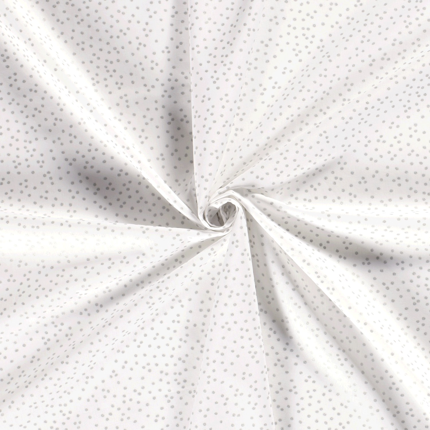 Délicat, intemporel et pourtant un vrai accroche-regard : ce tissu popeline enchante avec un élégant motif à pois d'un argent légèrement chatoyant sur un écru chaud. Les points discrètement brillants ont un effet noble sans être envahissants et ajoutent une touche de style à tous les projets de couture.