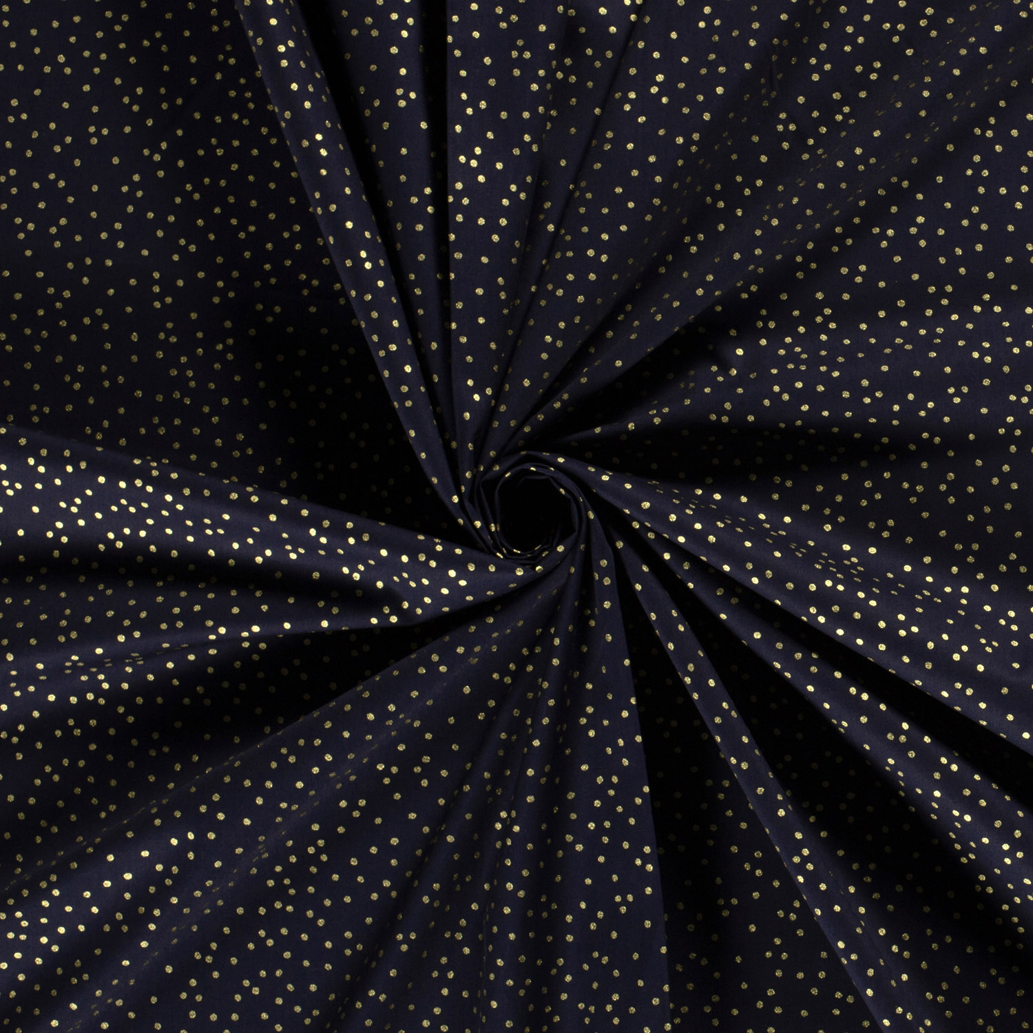 Difficile de faire plus élégant : sur un fond bleu foncé profond, de fins pois dorés dansent et donnent à ce tissu une touche de luxe. Le bleu marine noble est calme et stylé, tandis que les pois délicats en or chaud apportent une brillance discrète - parfait pour ceux qui aiment les motifs simples avec un accent particulier.