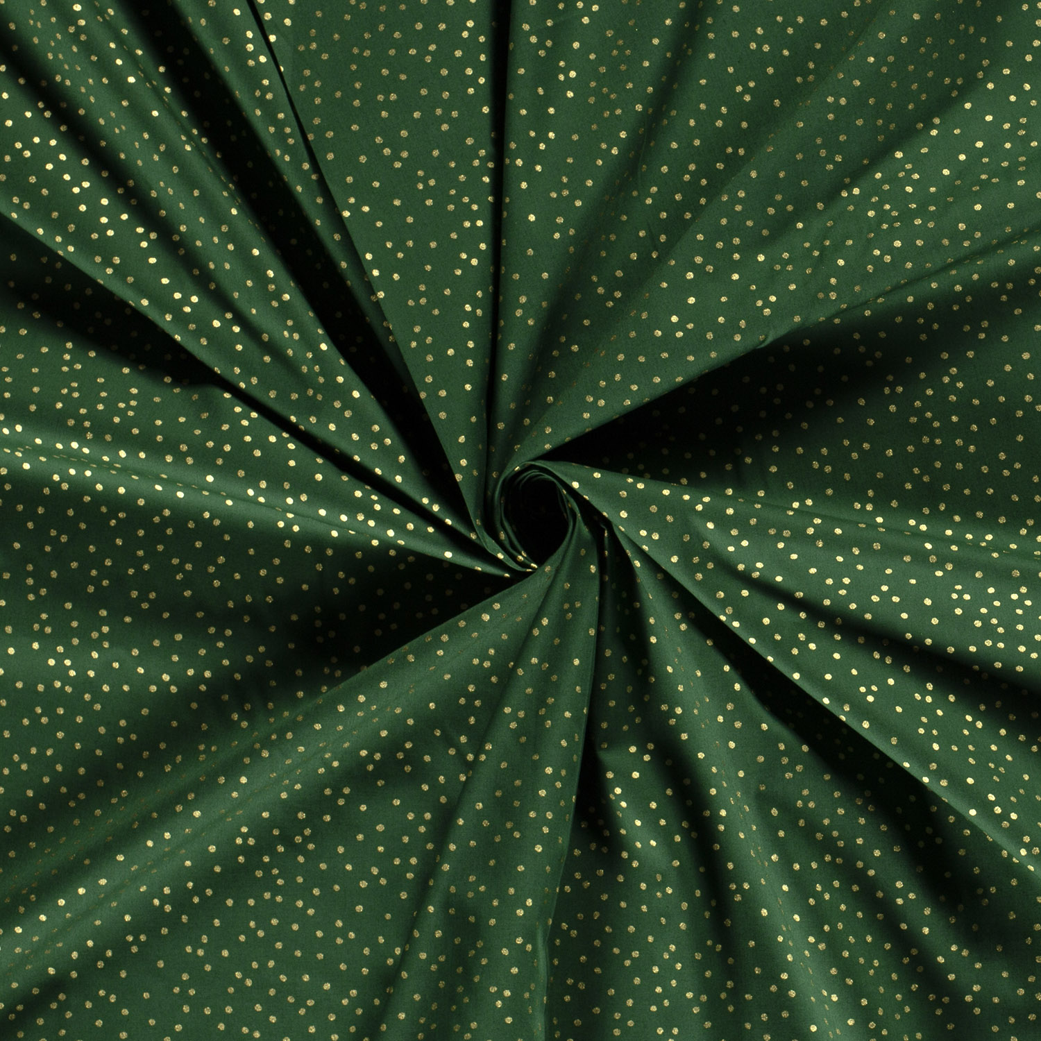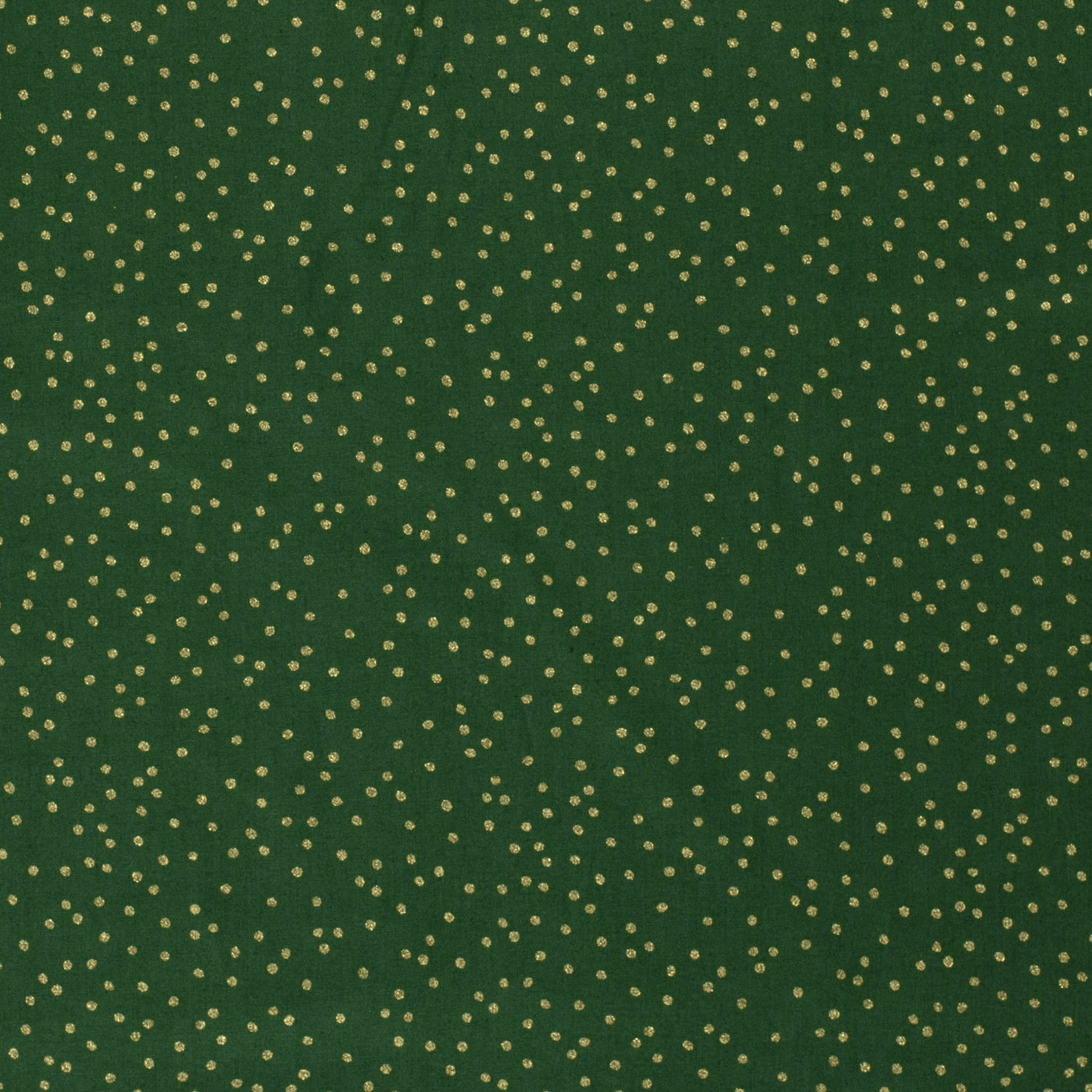 Une noble nuance de vert sapin rencontre de délicats pois dorés - ce tissu agit comme une touche de magie hivernale tout au long de l'année. Le fond vert profond et riche rappelle les forêts de sapins denses, tandis que les points fins et uniformément répartis dans un ton doré chaud scintillent subtilement et donnent au design une note élégante et festive.