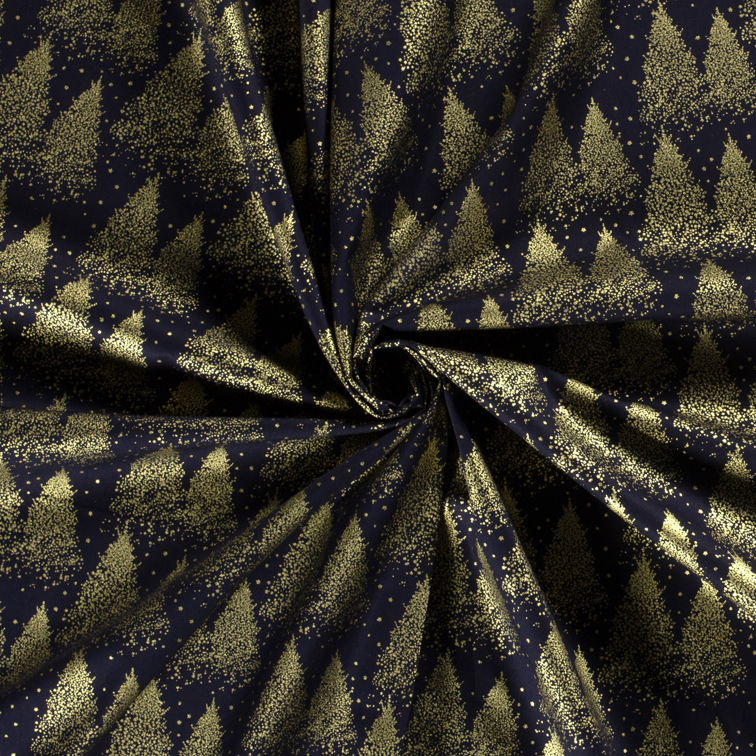 Popeline en coton - Forêt de Noël Gold Navy