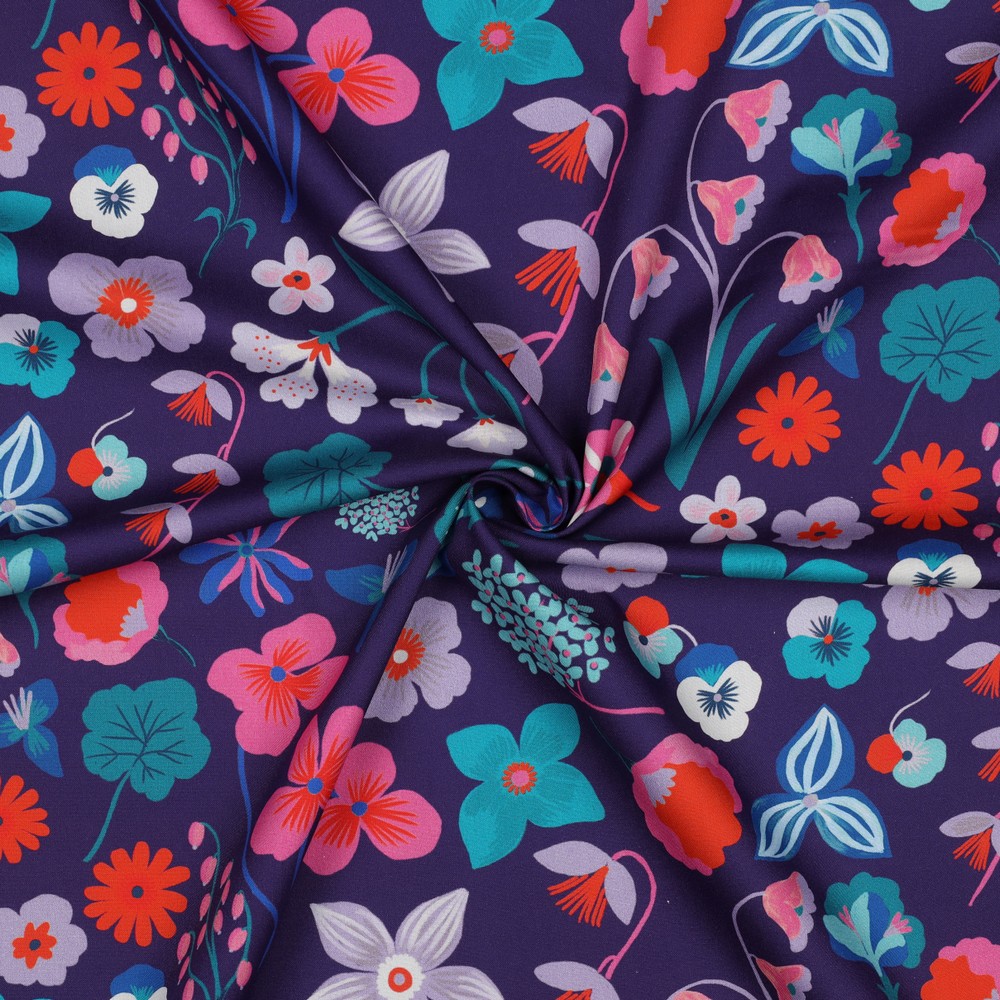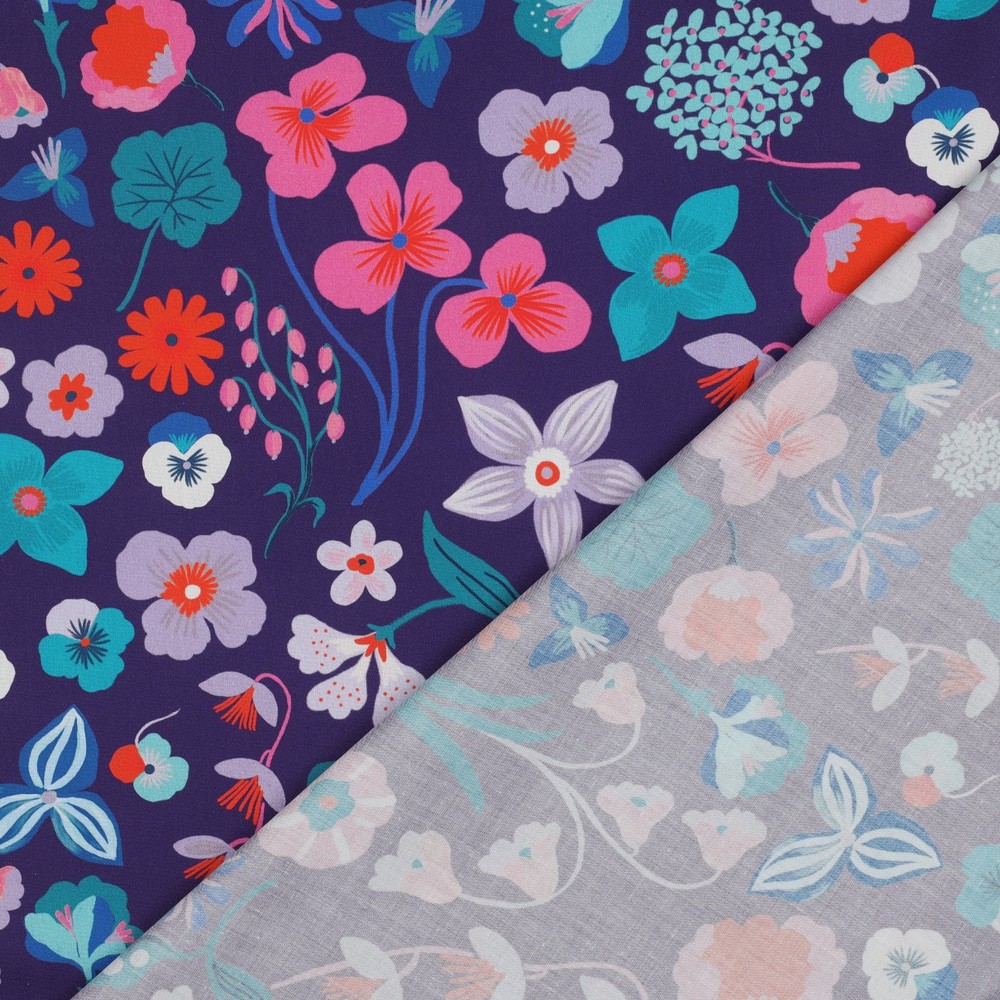 Popeline en coton - Nerida Hansen impression numérique Meadow Flower bleu