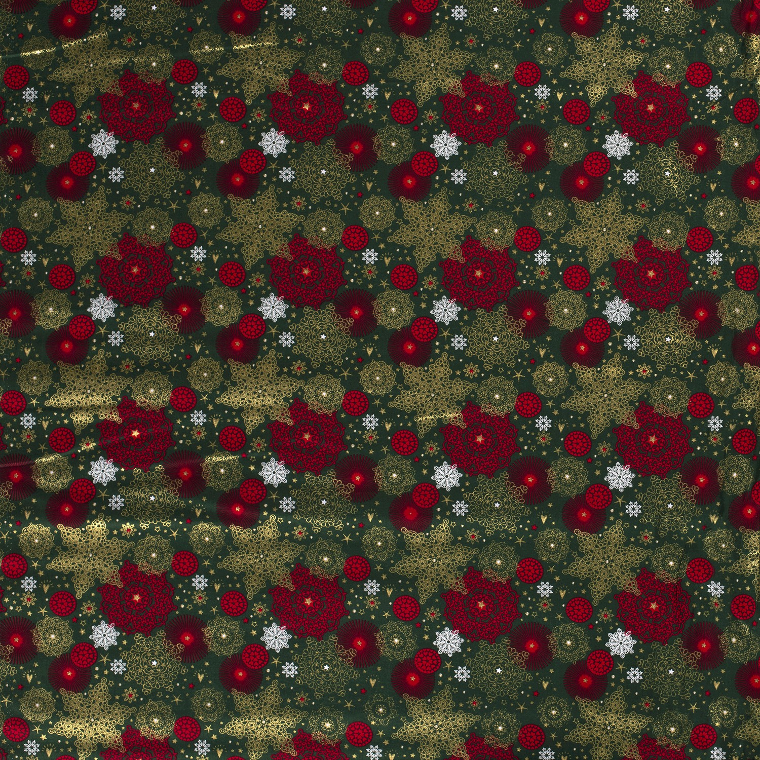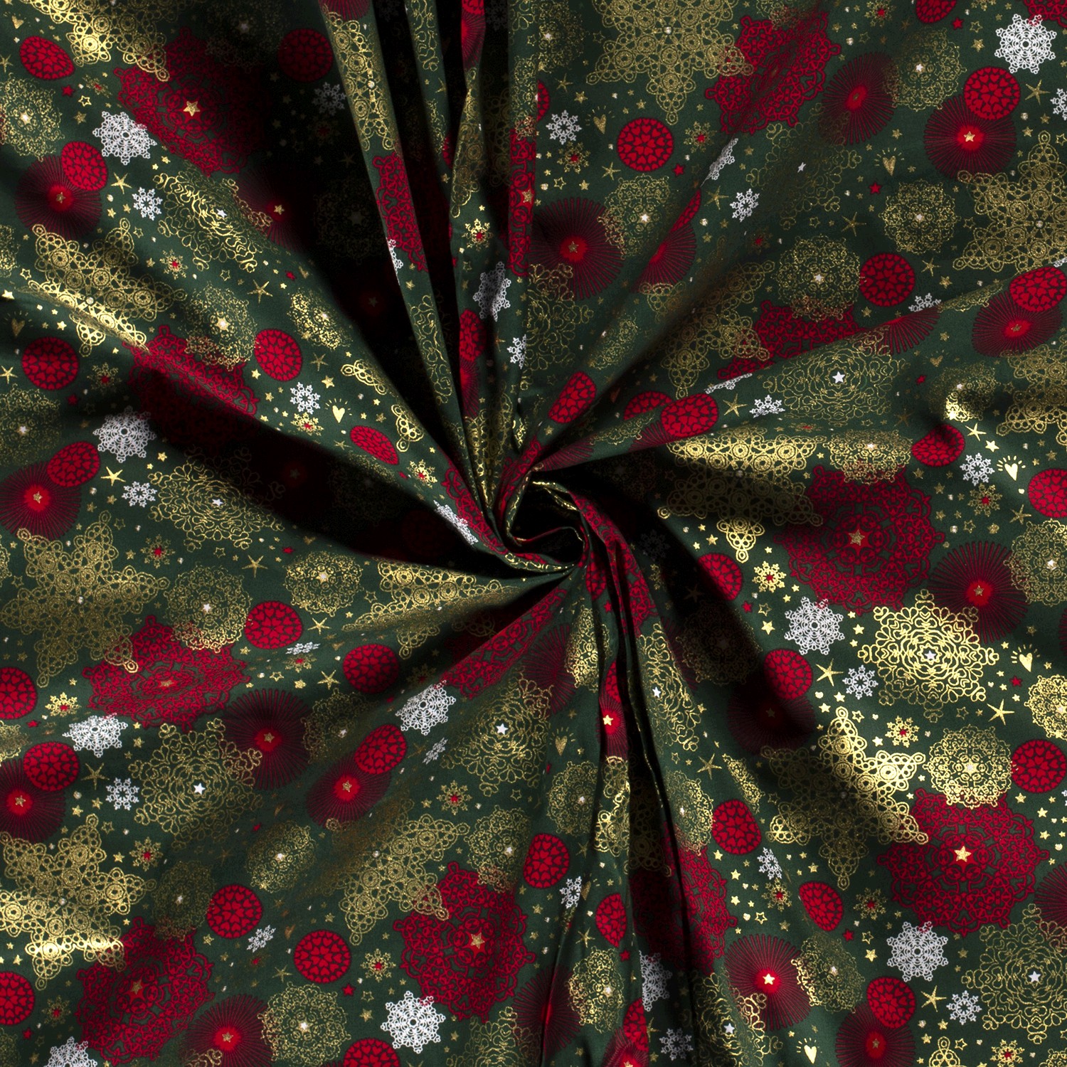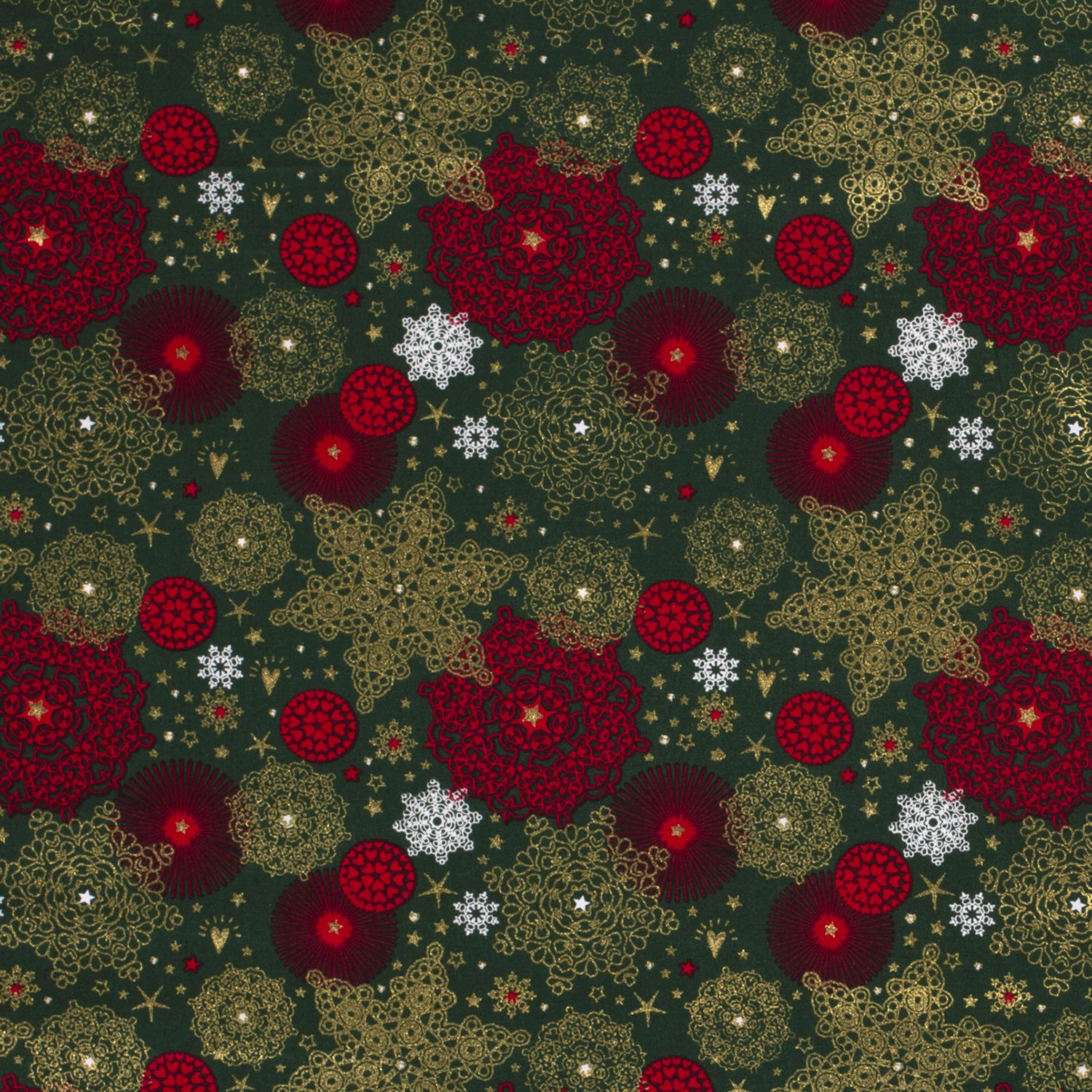 Coton NOËL Impression Dorée Winterwonderland Vert Foncé