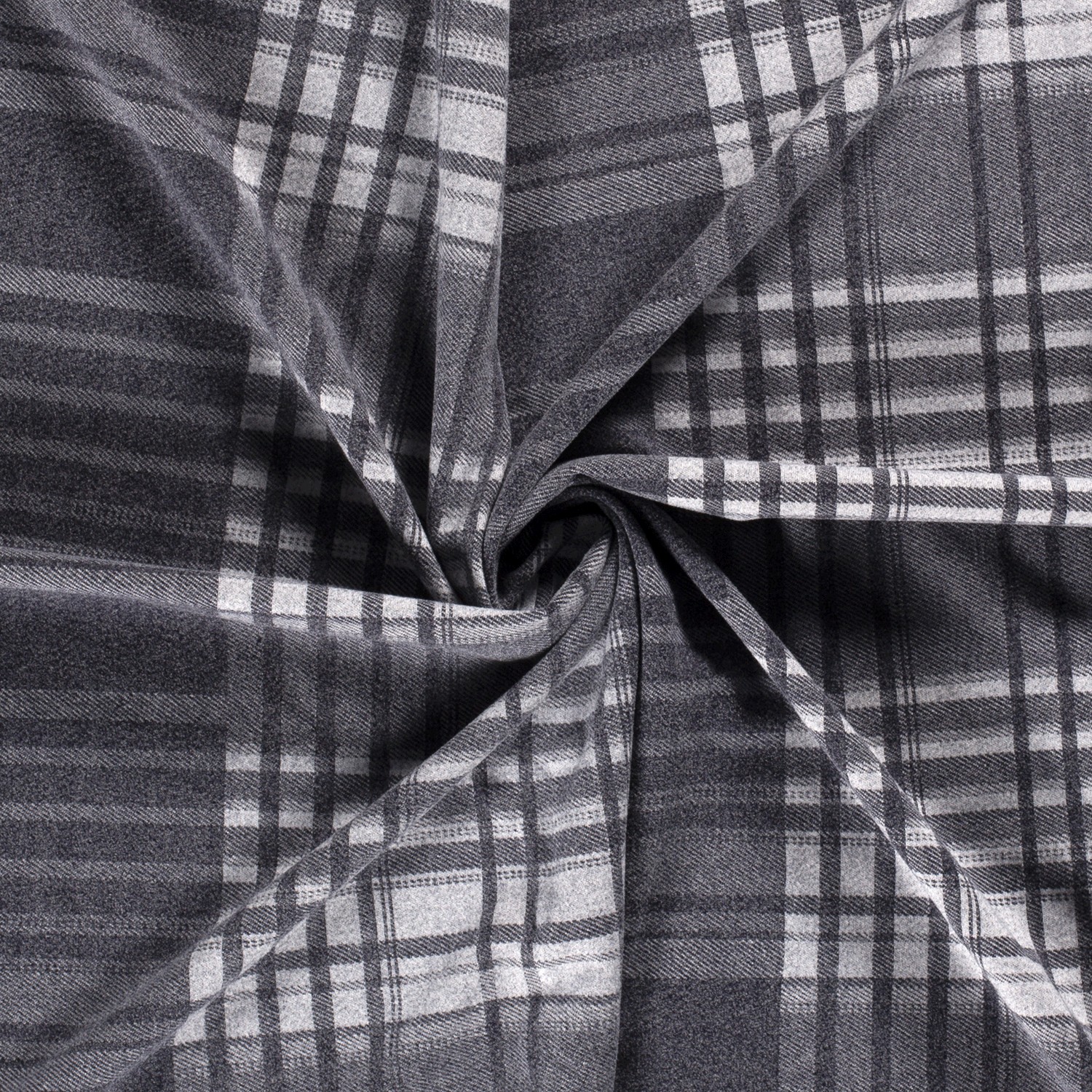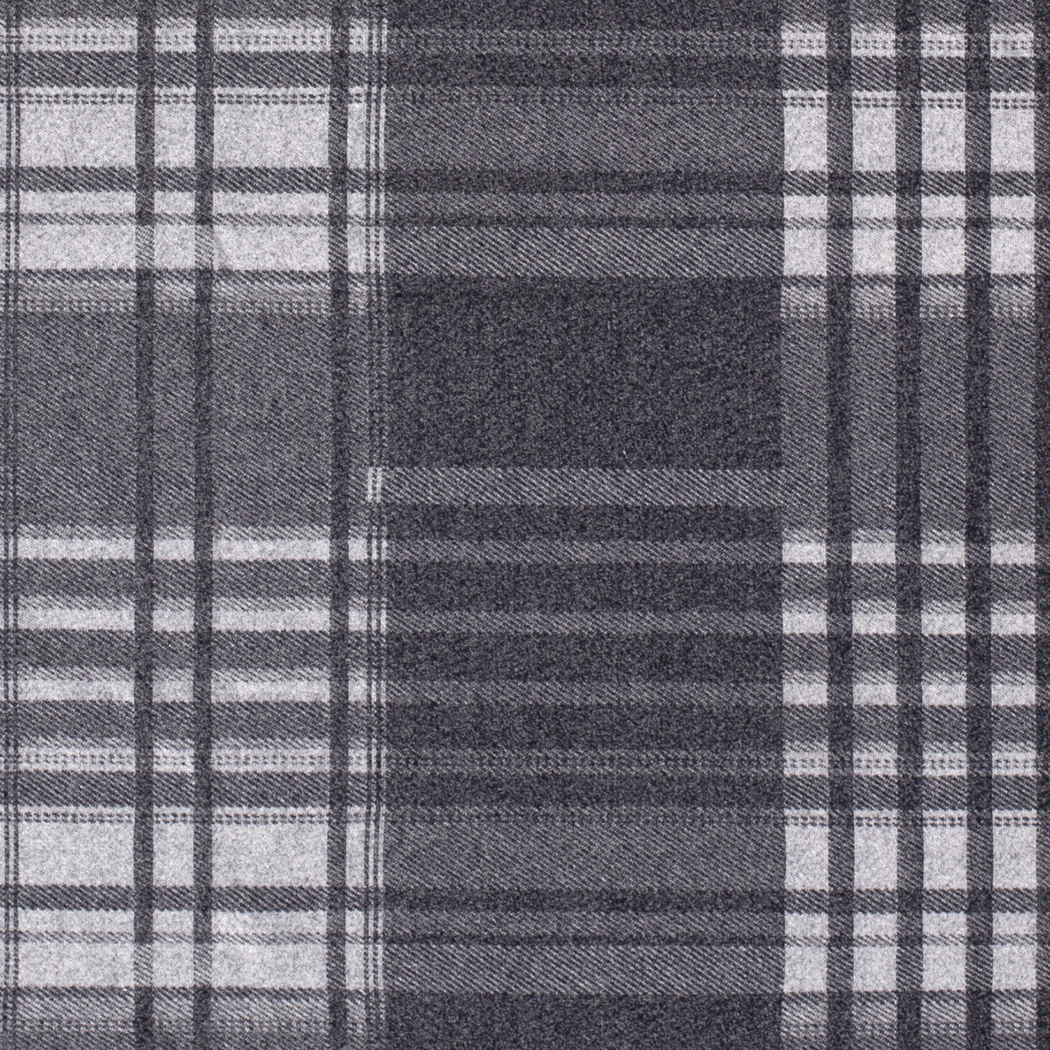 Ce tissu flanelle tout doux présente un motif à carreaux classique dans un élégant gris foncé, ponctué de nuances de gris plus claires parfaitement assorties. Les carreaux rectangulaires nets confèrent au tissu une allure intemporelle et moderne, rappelant les tissus de chemises de haute qualité, et offrant de nombreuses possibilités d’association.