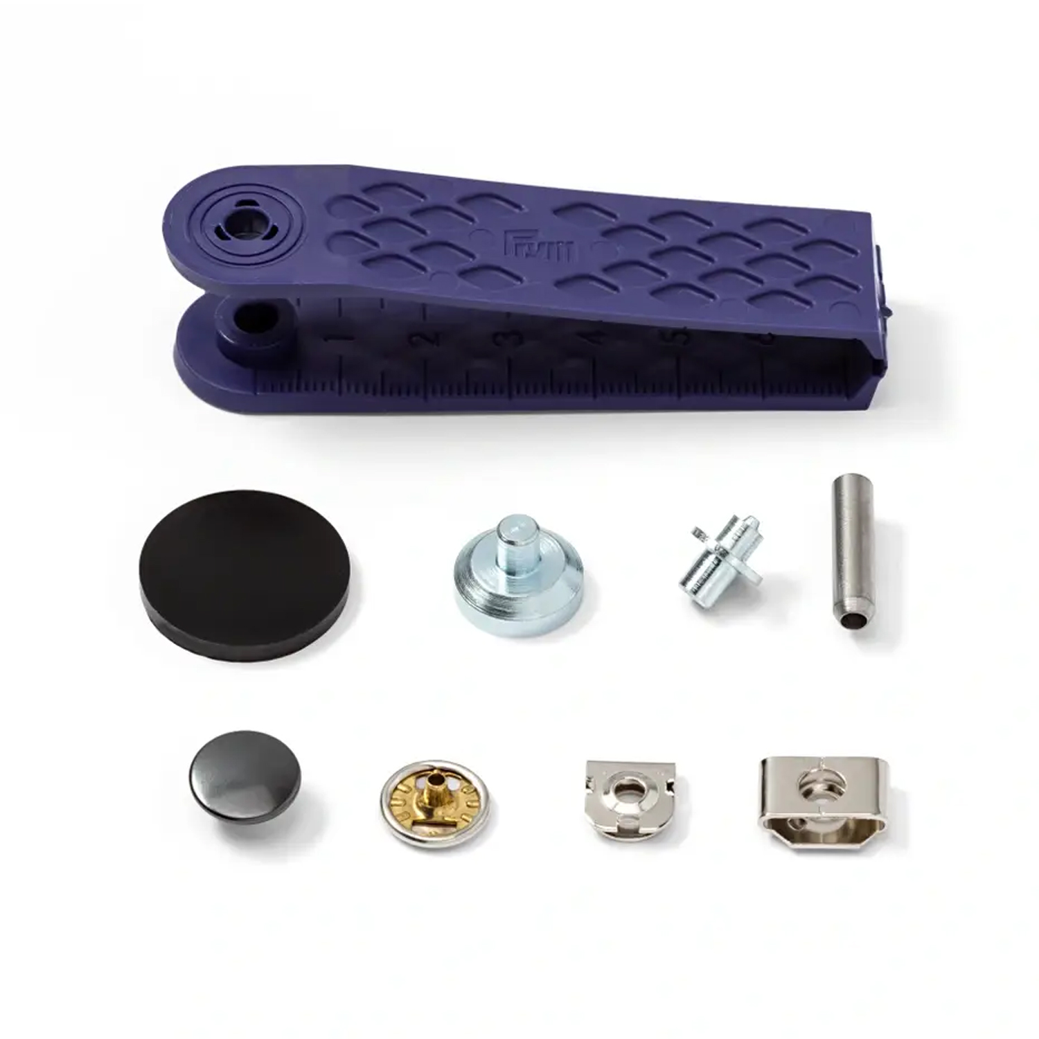 Avec les crochets pour pantalons et les barrettes sans couture de Prym, tu garantis en un tour de main une fermeture de pantalon propre et professionnelle - sans avoir à coudre. Les crochets se fixent facilement à l'aide de la pince VARIO, d'un marteau ou du trépied, l'outil adéquat est déjà inclus dans le kit.