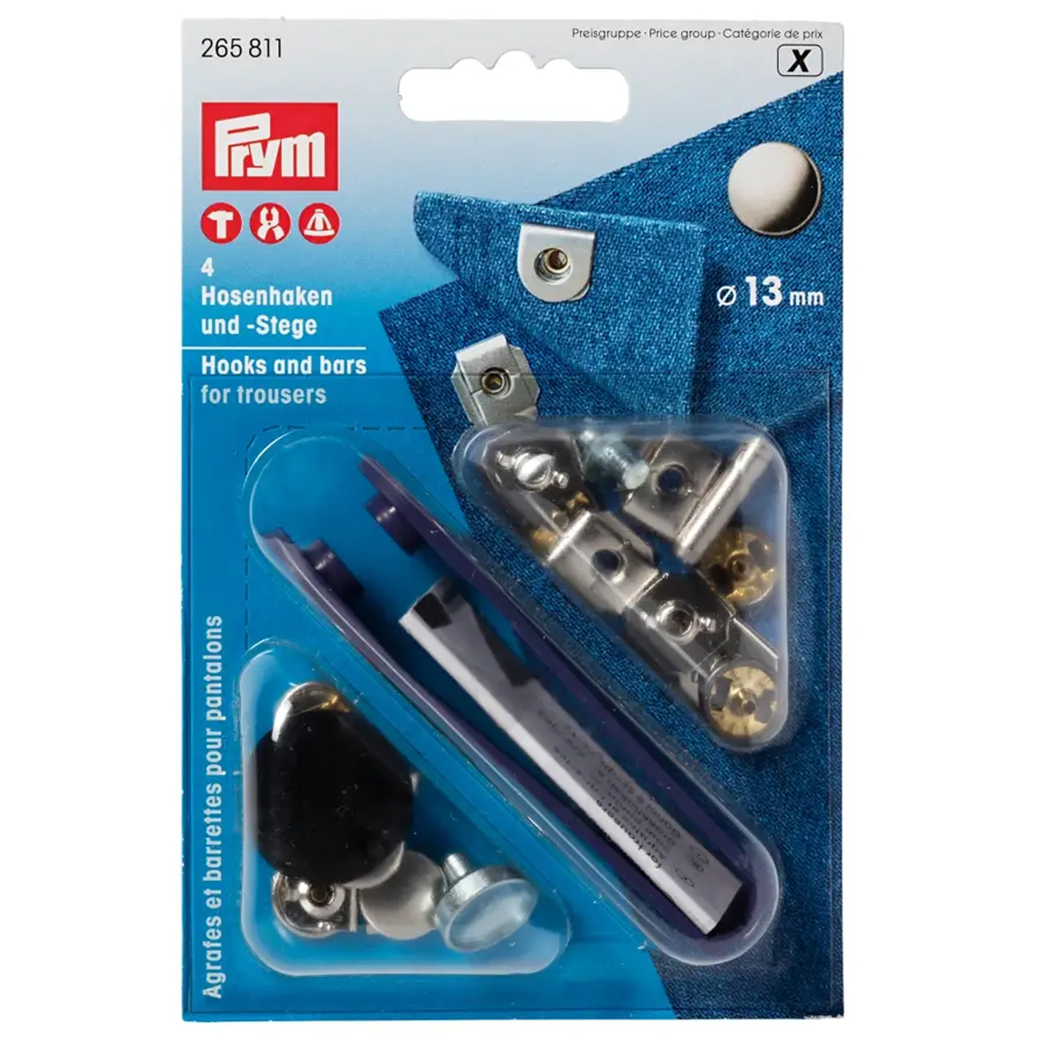 Prym Crochets et barrettes sans couture pour pantalons - 13mm - argenté/bruni - 4 pièces