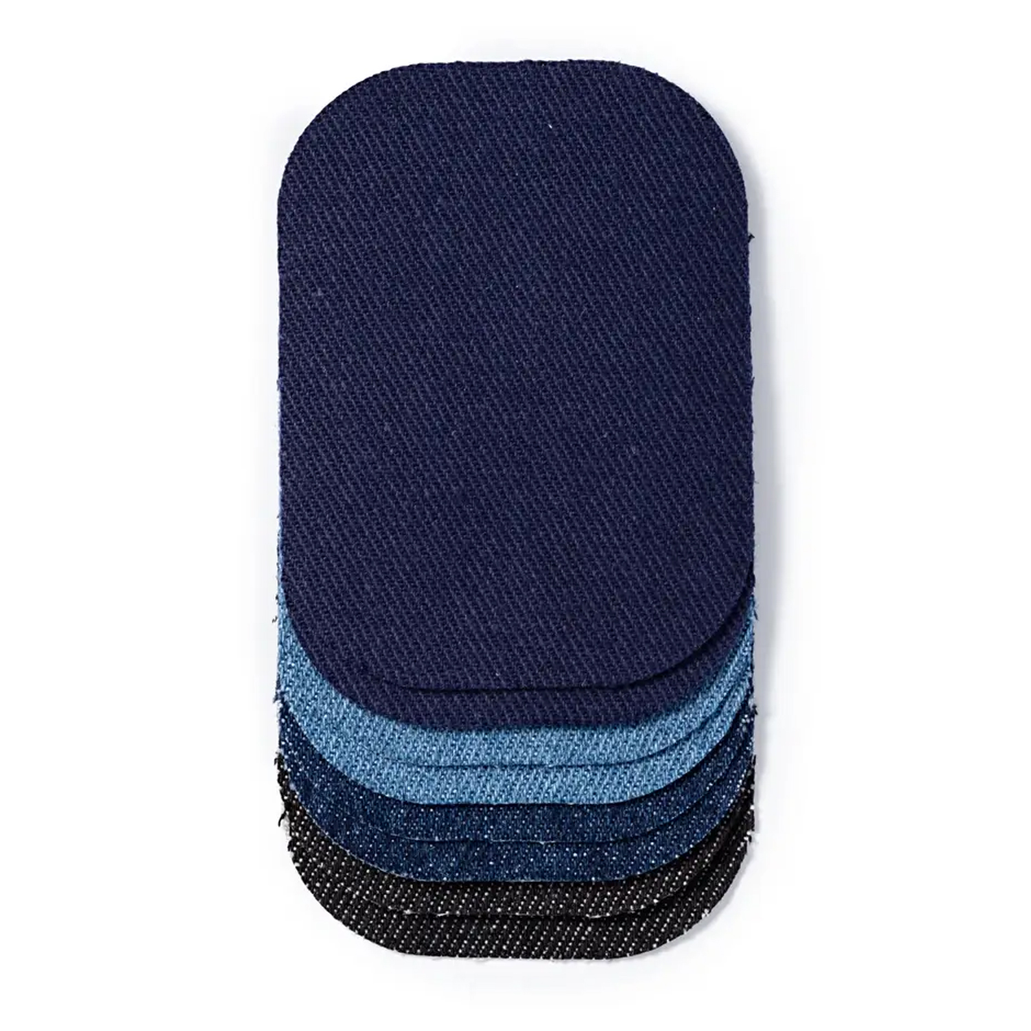 Les patchs rectangulaires sont disponibles dans un mélange harmonieux de nuances de jeans classiques : du bleu denim clair aux tons bleus moyens en passant par les couleurs de jeans plus foncées et profondes. Tu trouveras ainsi le ton qui convient à chaque pantalon, veste ou sac - discrètement ton sur ton ou délibérément en contraste stylé.