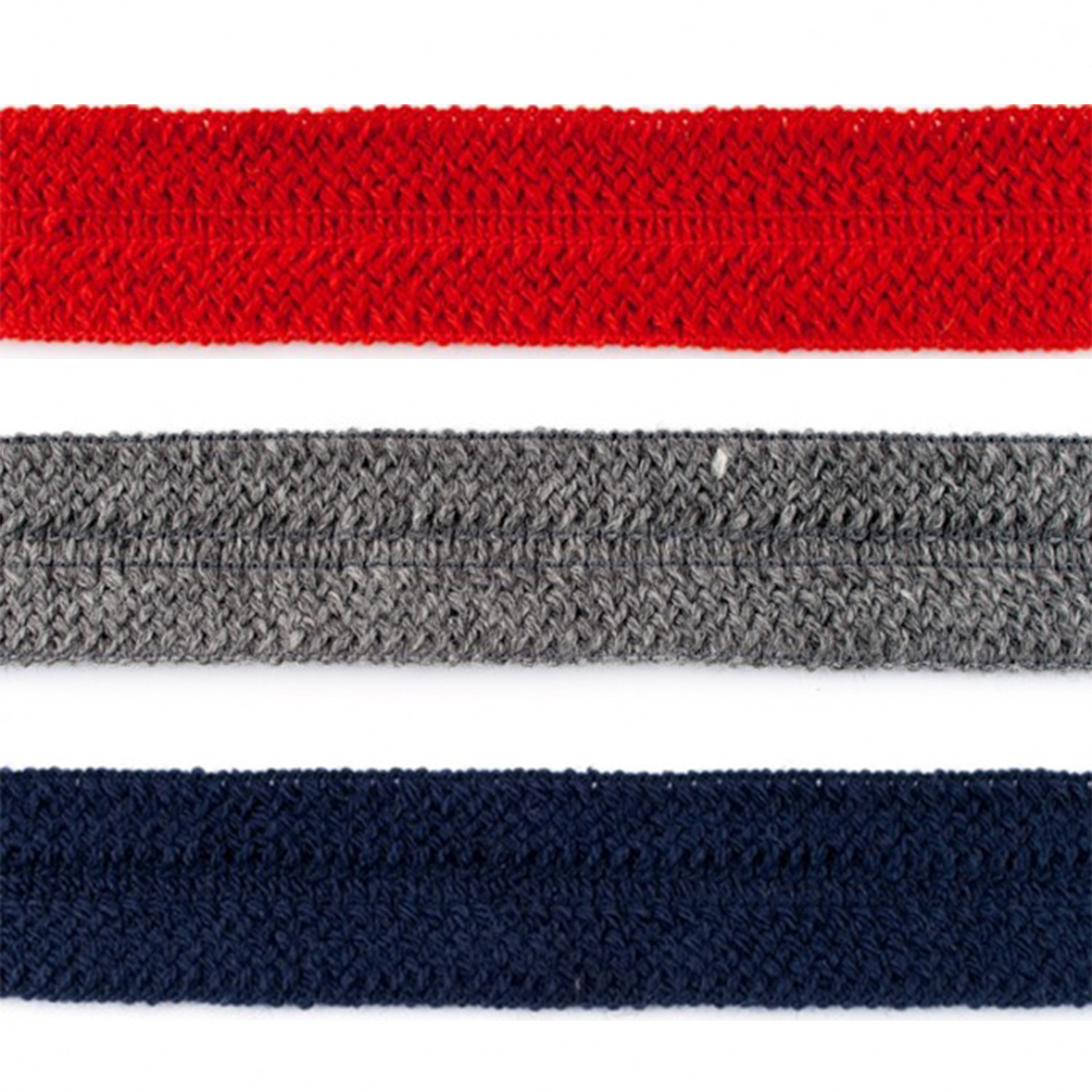 Les couleurs sont classiques et peuvent être combinées de multiples façons : un rouge vif et chaud apporte des accents frais, le gris moyen discret est intemporel et noble, et le bleu foncé profond apporte une élégance tranquille à tes créations. La structure finement tricotée de la tresse donne à tes bords un bel aspect légèrement plastique et s'intègre harmonieusement aux tissus en laine et en laine.