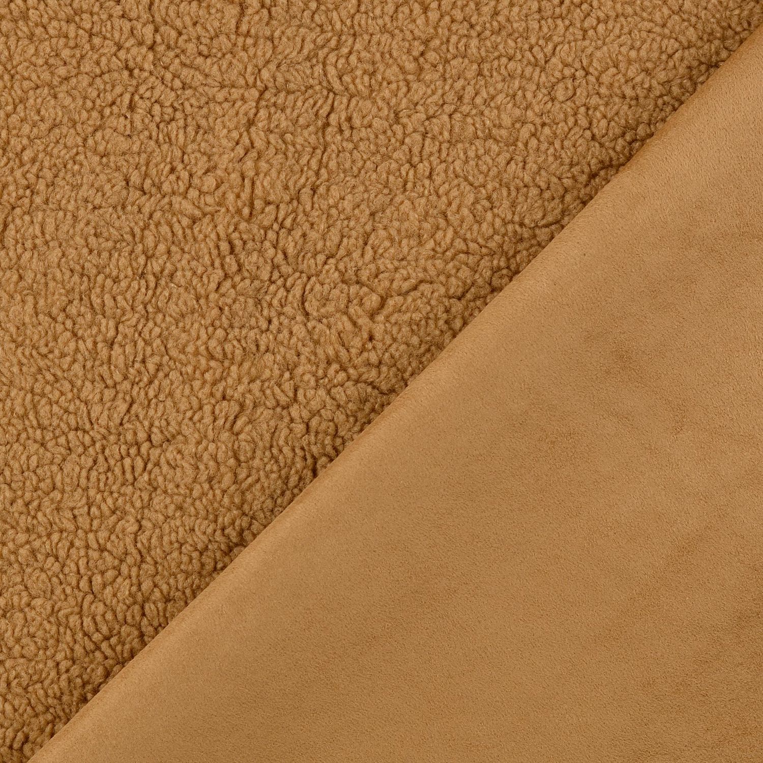 Un tissu, deux looks : à l'extérieur, ce scuba présente un élégant marron clair uni avec une surface lisse et moderne – à l'intérieur, il surprend par une face intérieure douillette en fausse fourrure couleur beige chaud.