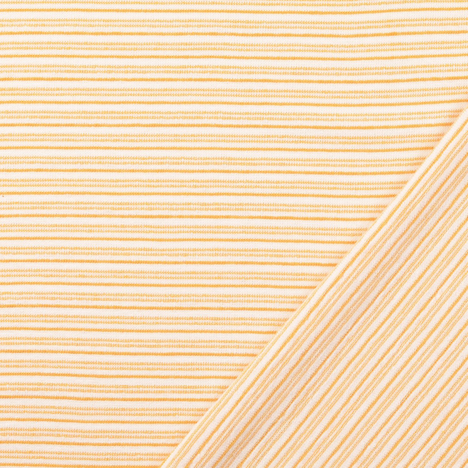 Que ce soit pour des tenues printanières, des soirées d'été ou des compagnons colorés du quotidien – ce French Terry rayé orange et crème deviendra rapidement votre tissu préféré dans votre atelier de couture.
