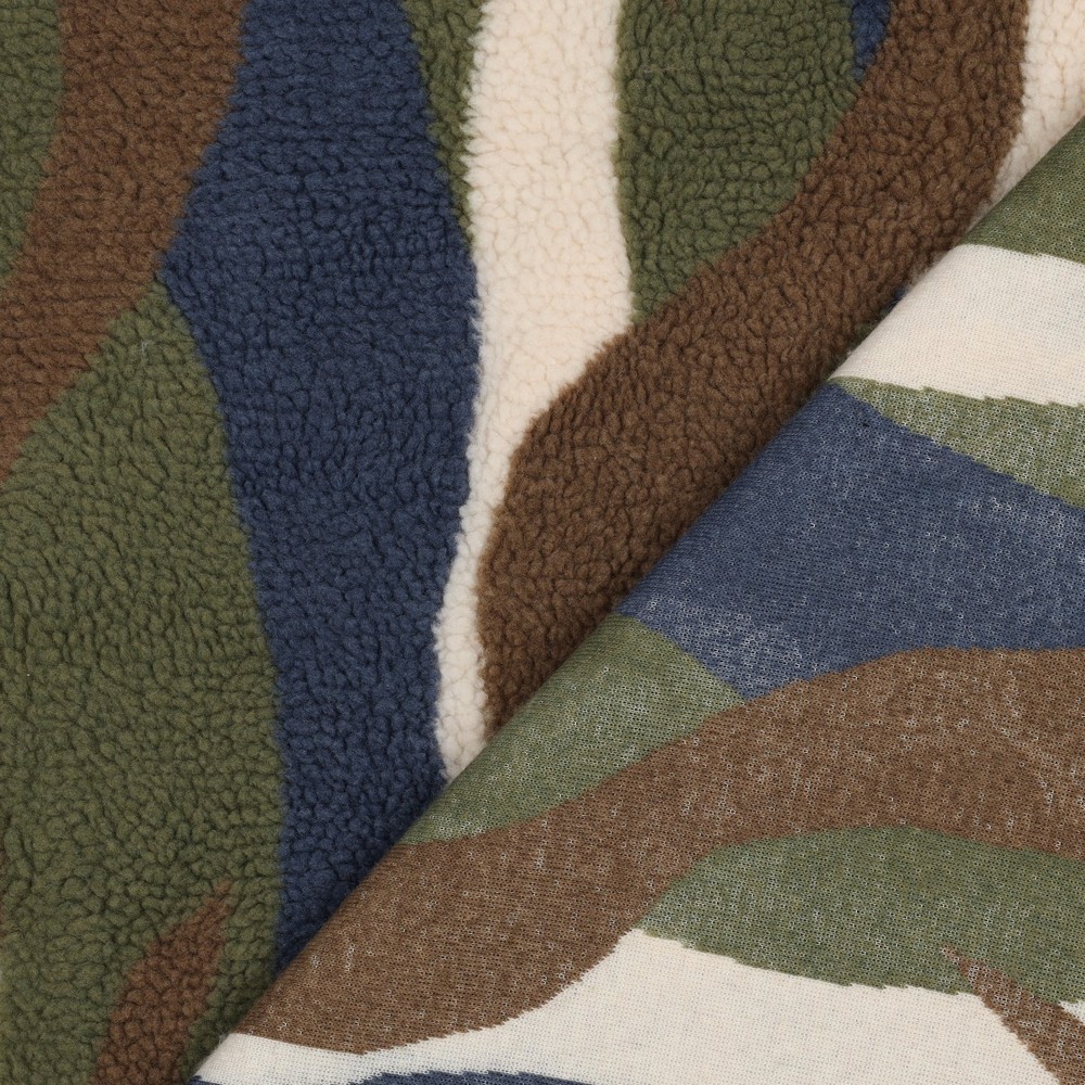 Doux, coloré et tout simplement irrésistible : ce teddyfleece séduit avec un motif tourbillon vivant en bleu et multicolore. Comme des vagues de couleur douces, un bleu intense, un rose délicat, un jaune frais, de l’orange et du turquoise se mêlent pour créer un look marbré joyeux qui attire immédiatement le regard.