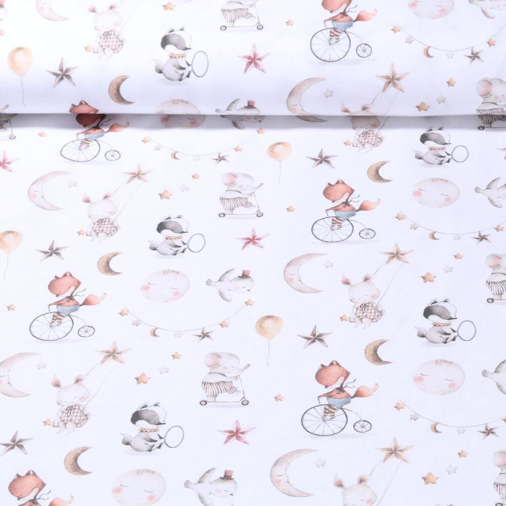 La palette de couleurs harmonieuse avec des nuances douces de rose, de beige et de gris crée une ambiance calme et confortable - parfaite pour les chambres de bébé et d'enfant. Qu'il s'agisse de linge de lit enchanteur, de coussins douillets, de rideaux légers, de nids, de décoration ou de vêtements mignons pour les plus petits : ce tissu transforme chaque projet de couture en une pièce unique et féerique.