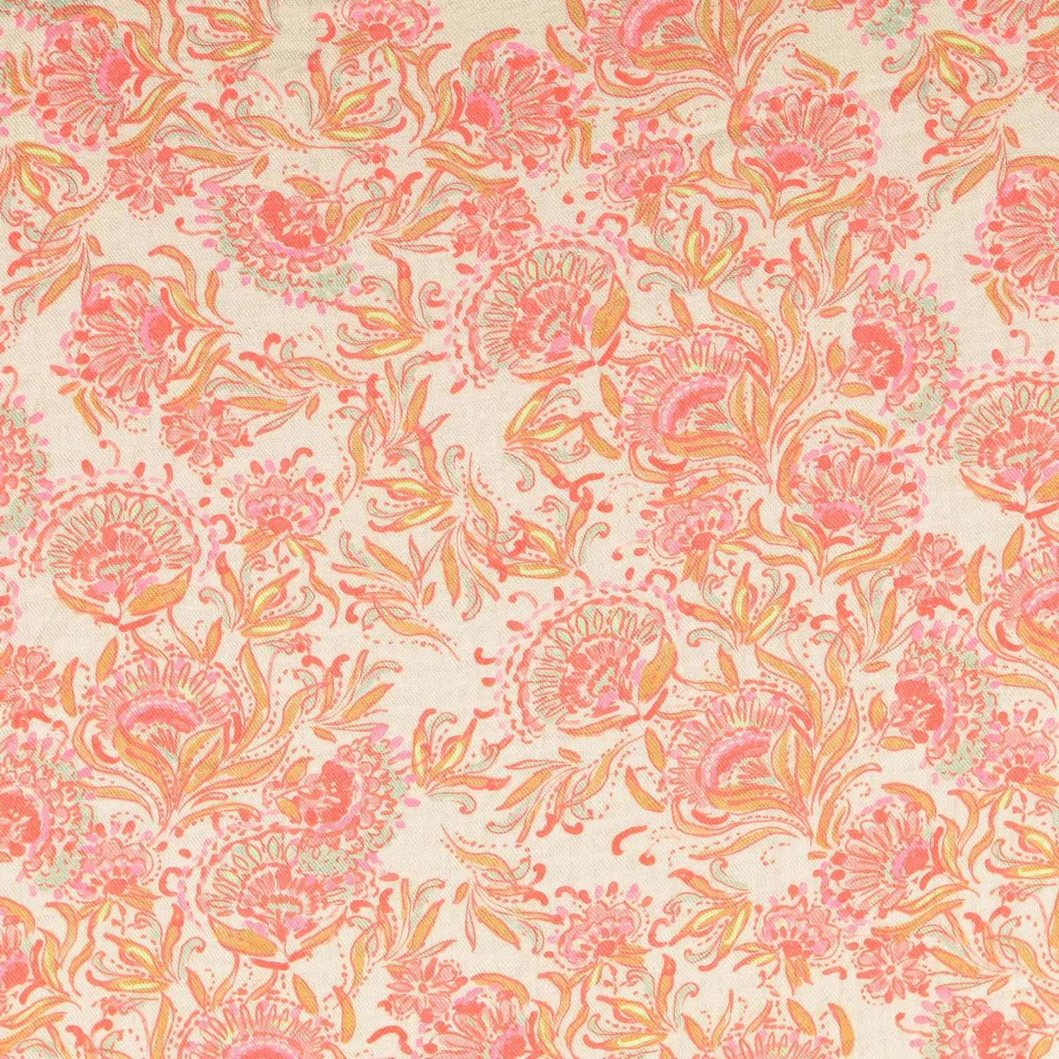 Un tissu comme une soirée d'été dans un jardin bohème : des tons chauds d'orange rencontrent des nuances délicates de crème et de beige, avec de fins accents en brun et rouge discret. Le motif Paisley détaillé ressemble à un mélange vintage soigneusement assemblé – ludique, mais néanmoins élégant et harmonieux.