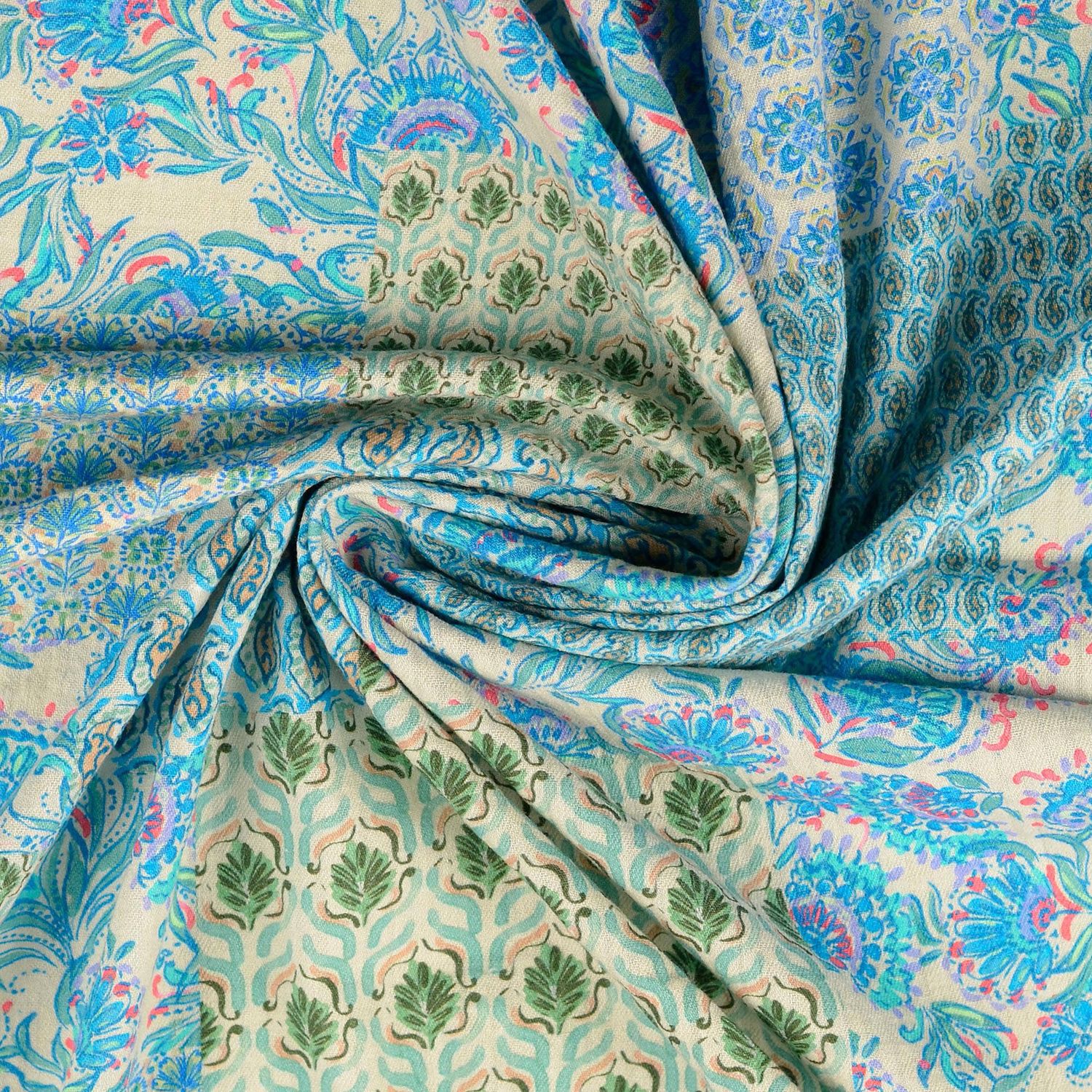 Tissu en coton tissé - Impression numérique Vintage Mix bleu