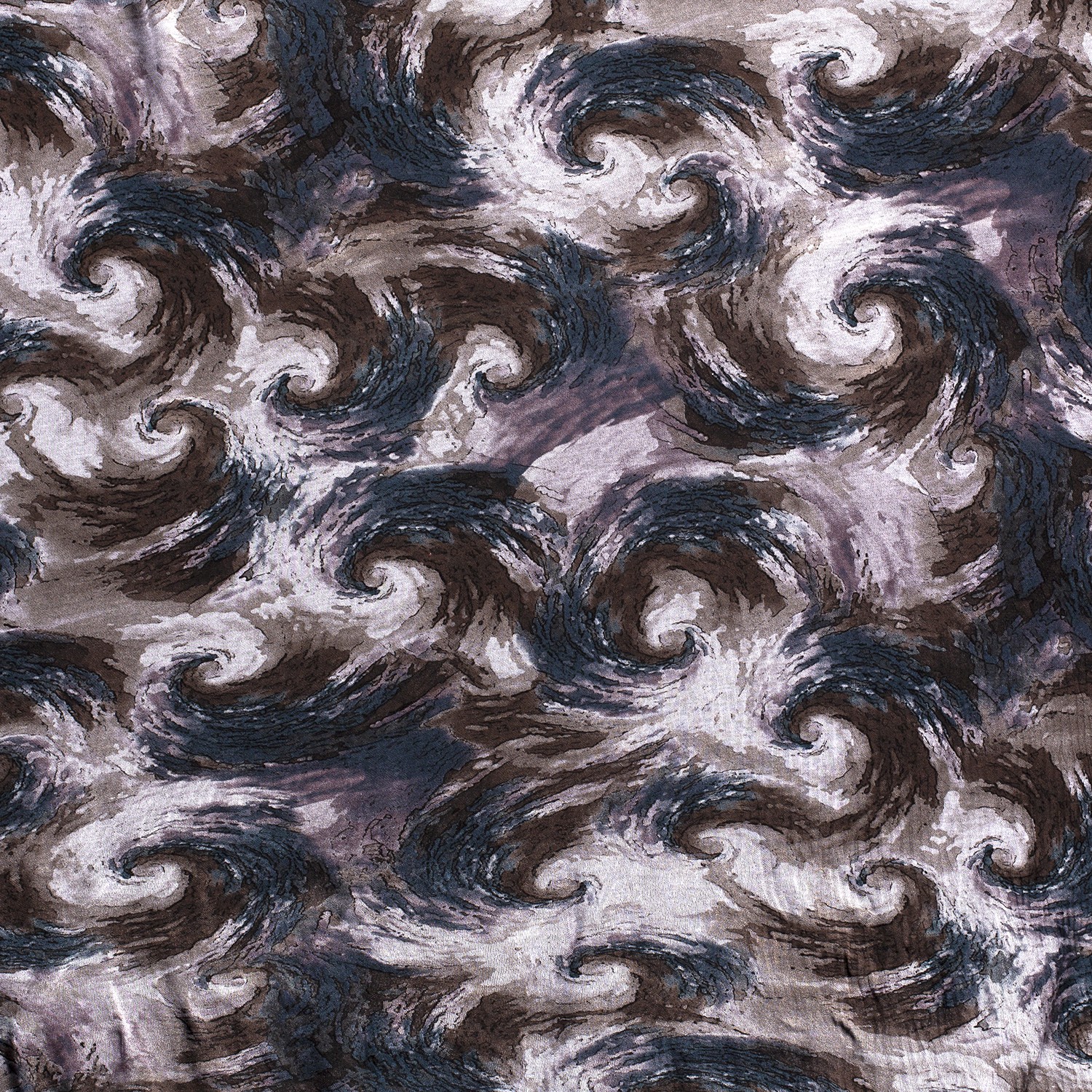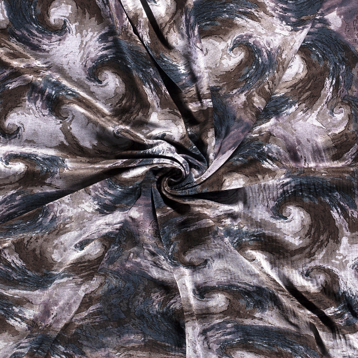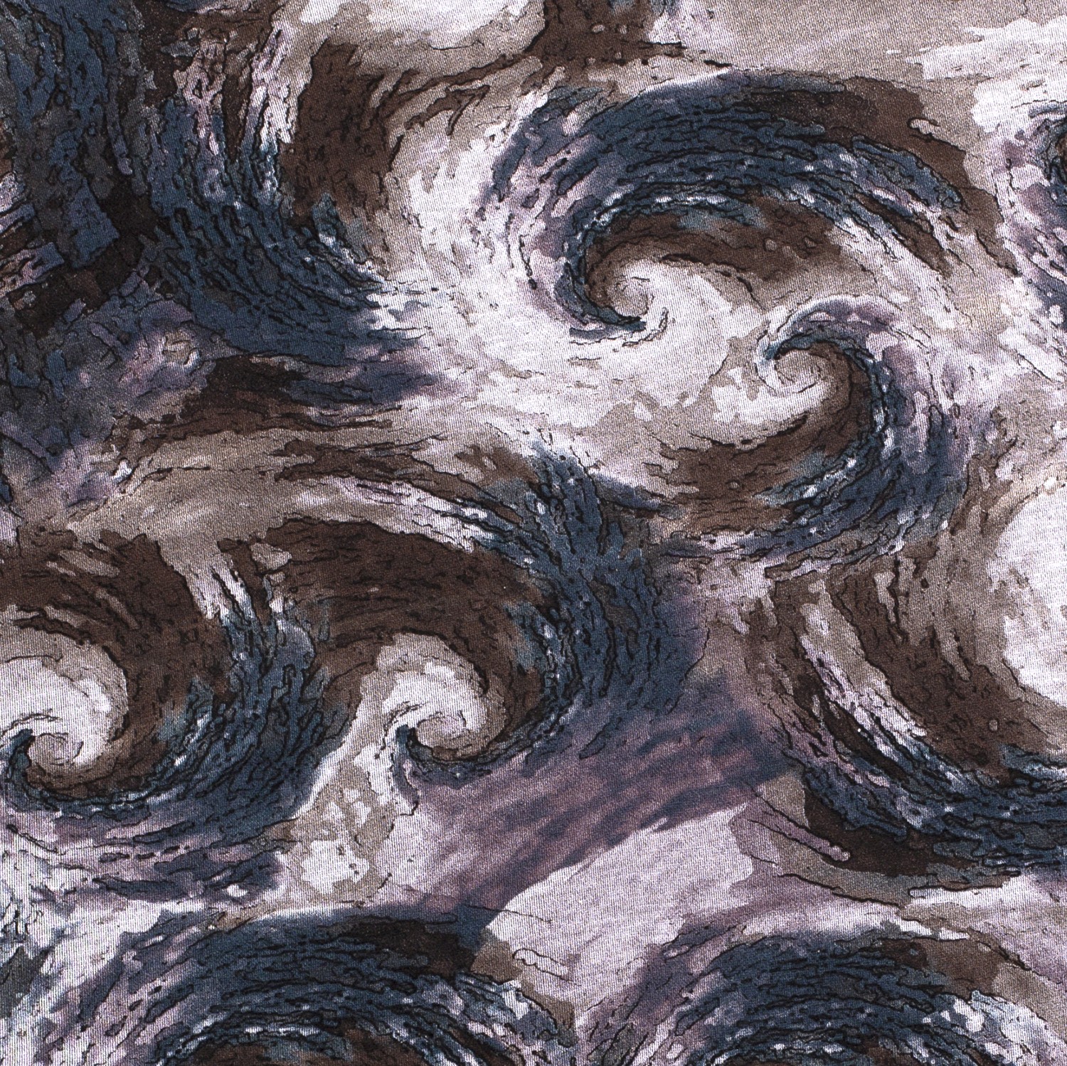Comme de douces vagues sur la mer, ce motif coule sur le tissu dans des tons bleus harmonieux. Des lignes délicates et ondulées du bleu clair au bleu foncé évoquent les mouvements de l'eau sous la lumière du soleil et donnent au tissu une profondeur élégante et vivante.