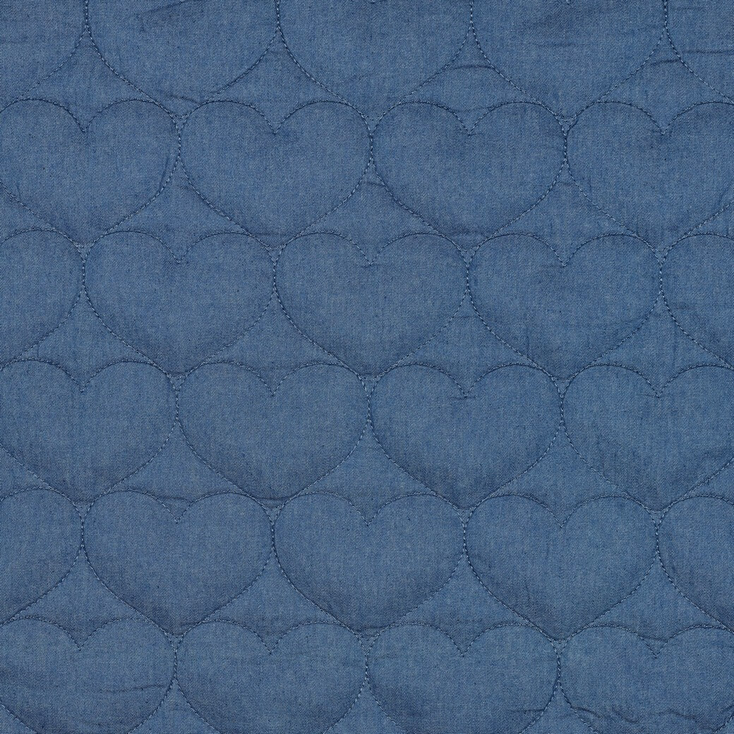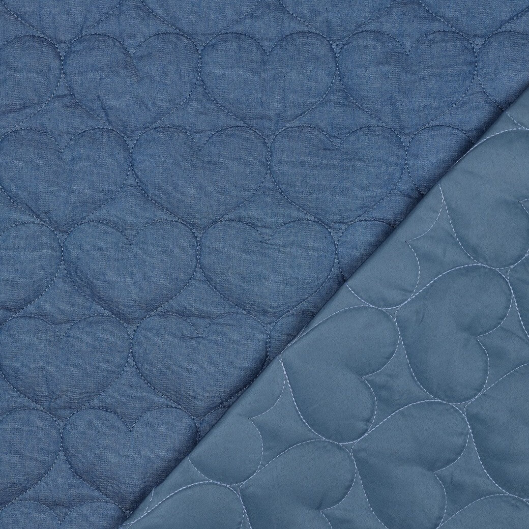 Tissu matelassé pour veste - Coeurs Bleu jeans