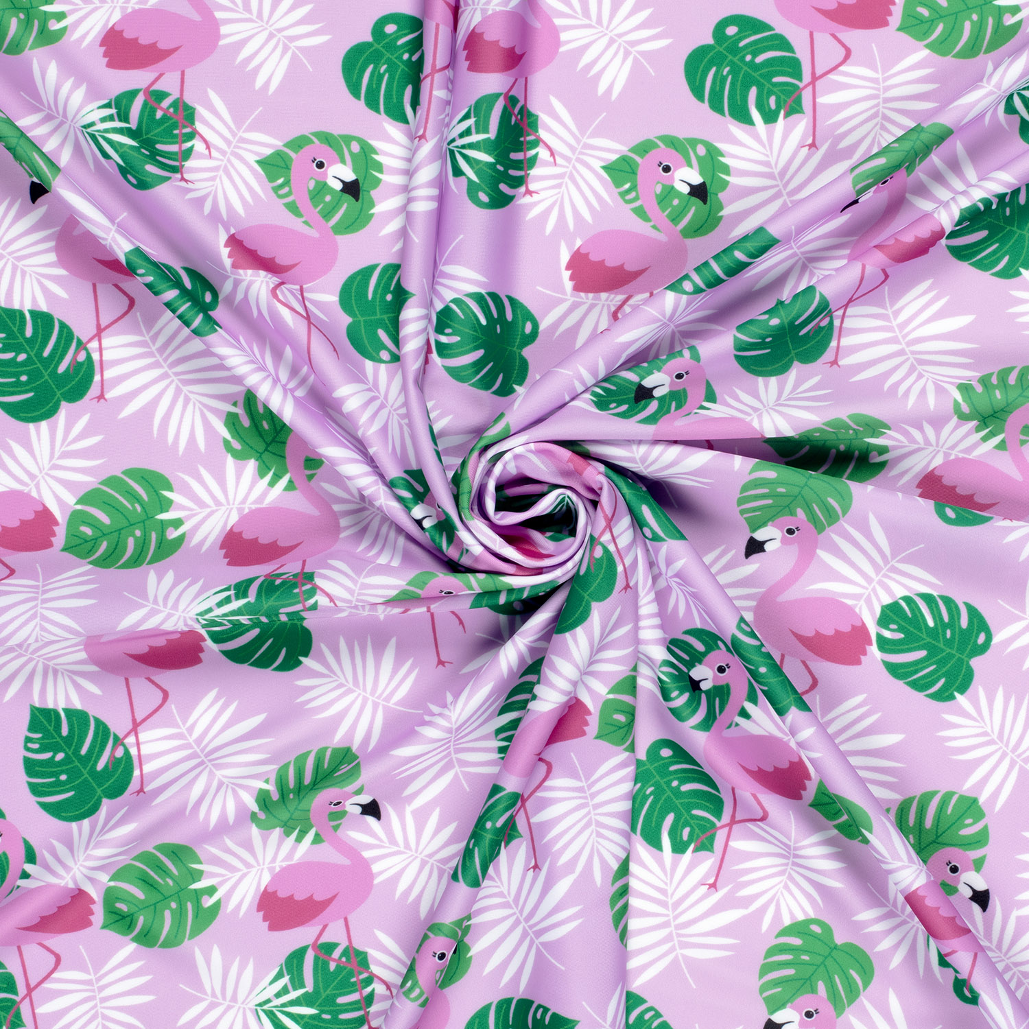 Tissu sport et maillot de bain – impression numérique flamants violets UPF50 recyclé