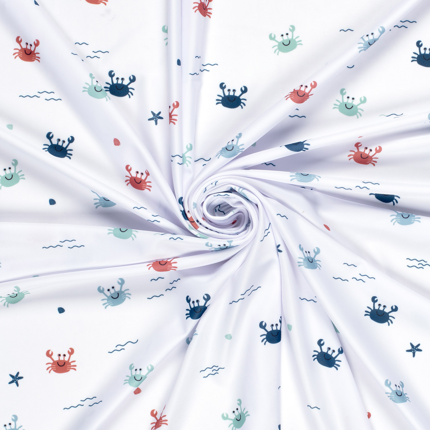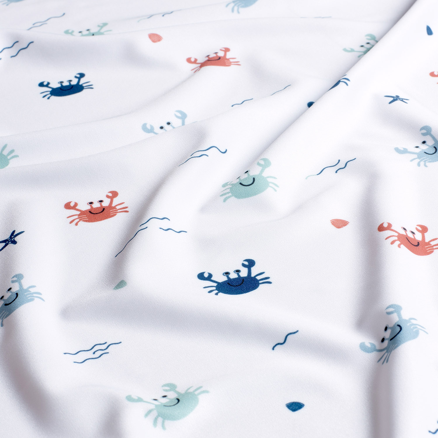 Tissu sport & maillot de bain - impression digitale crabes blanc UPF50 recyclé