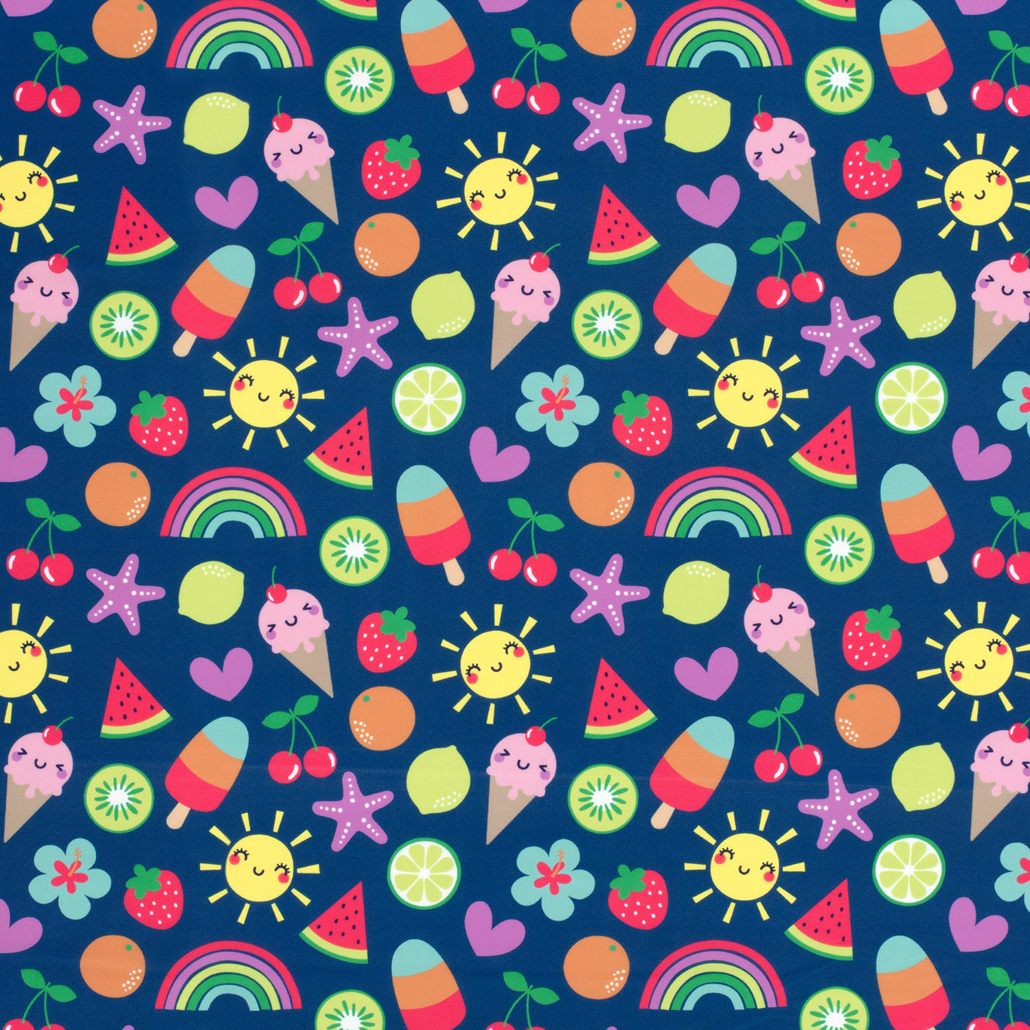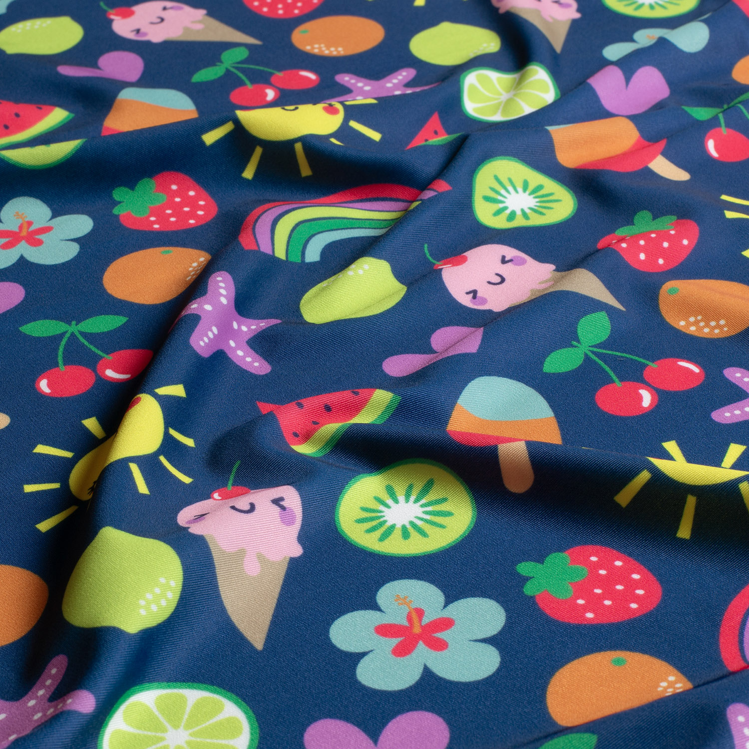 Tissu sport & maillot de bain - Impression numérique Glace aux fruits Navy UPF50 Recyclé