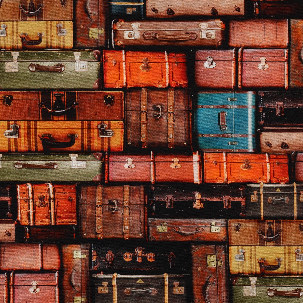 Ce canvas en coton vous emmène dans un voyage nostalgique : sur un fond chaud orange, se répartissent des valises vintage illustrées avec soin, de diverses formes et tailles. Les détails fins tels que les boucles, poignées et garnitures décoratives donnent aux valises de voyage une apparence presque vivante et confèrent au design un charme rétro – comme tiré de vieux catalogues de voyage.