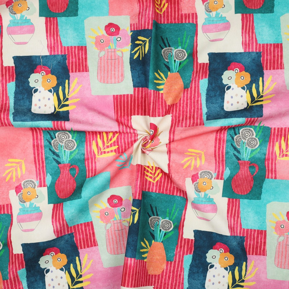 Toile de coton - Nerida Hansen impression numérique vases de fleurs roses