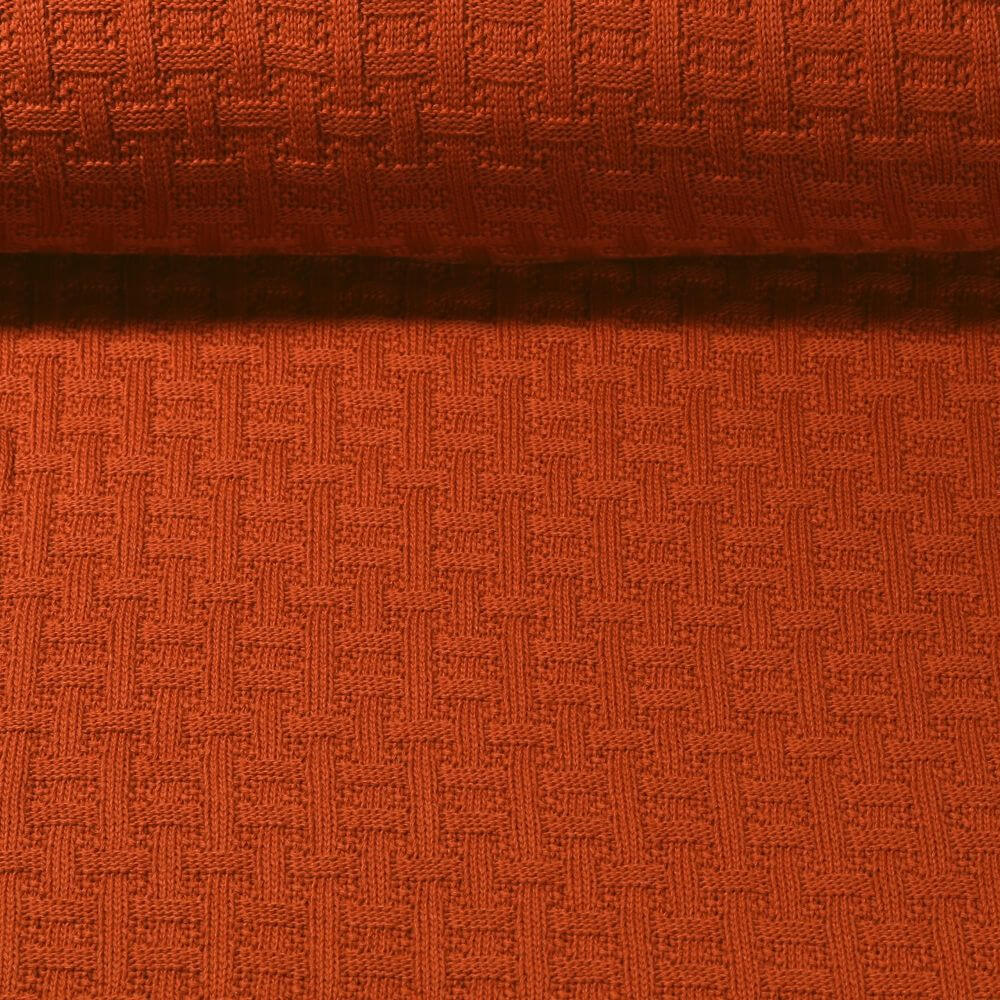 Un tissu comme une chaude soirée d'automne : le "Midnight Woven Knitty" en rouille enchante avec son design de tricot exceptionnel. Sur le fond sombre, presque bleu nuit, se trouvent de fines lignes graphiques dans des tons chauds de rouille et d'orange, qui rappellent un motif de mailles denses, tricoté avec amour. Il en résulte un look moderne et tissé, mais qui reste doux et confortable.