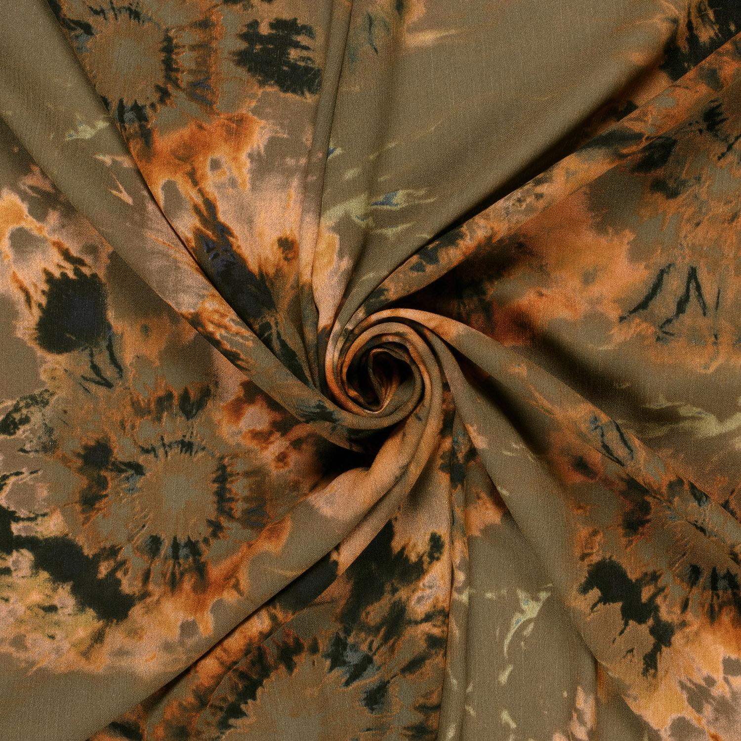 Comme une délicate brise de vacances sur la peau : ce crêpe de viscose Batik Taupe séduit par sa chute fluide et son imprimé batik vivant. Des nuances chaudes de taupe rencontrent des dégradés doux et nuageux dans des tons plus clairs et plus foncés – un jeu de couleurs harmonieux, à la fois élégant et décontracté.