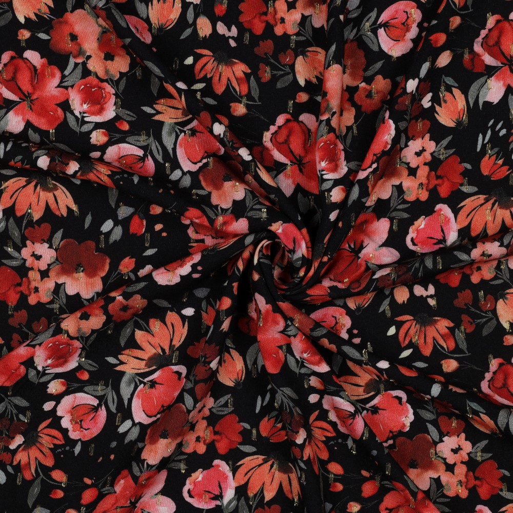 Viscose - Impression numérique Fleurs Lurex Noir