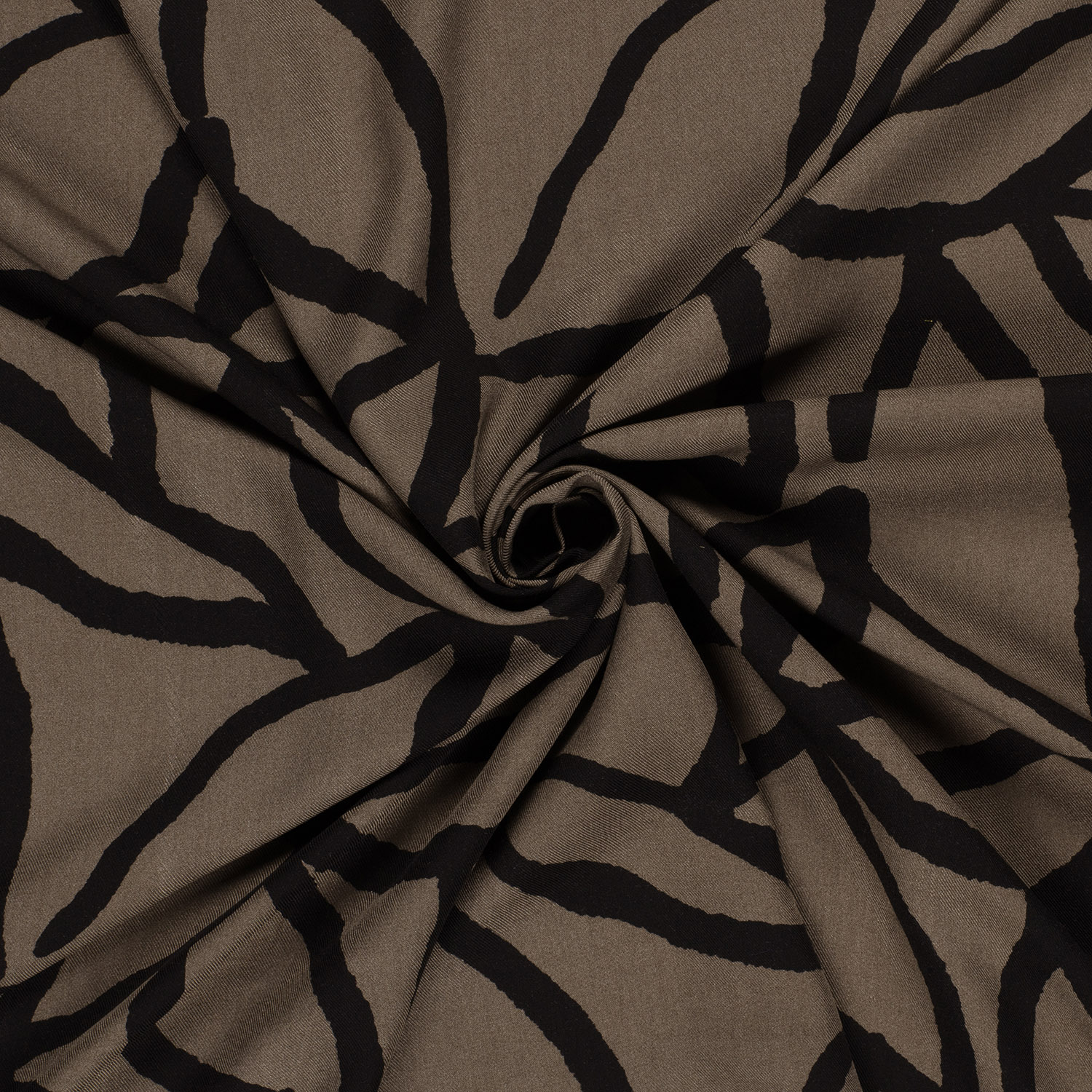 Élégant, moderne et merveilleusement polyvalent : ce twill en viscose séduit par un motif abstrait aux tons chauds marron, noir profond et nuances beiges douces. La surface fluide fait apparaître les formes graphiques comme peintes – un mélange stylé de lignes douces et de contrastes saisissants.